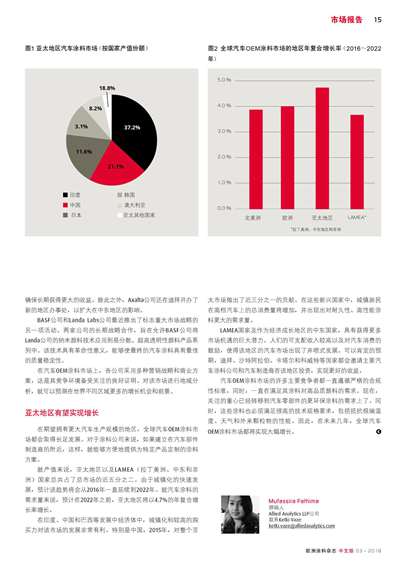 摘要:隨著全球各個地區出現了穩健的市場表現,汽車OEM涂料行業有責任確保一個有活力的競爭環境。特別是,亞太地區的獲利情況超過了其他地區。