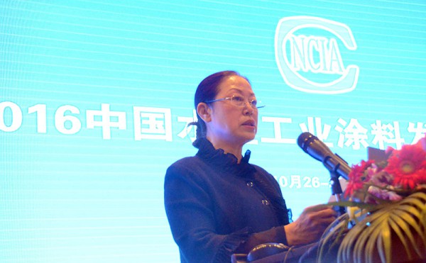 中國(guó)涂料工業(yè)協(xié)會(huì)會(huì)長(zhǎng)孫蓮英女士為2016中國(guó)水性工業(yè)涂料發(fā)展研討會(huì)致開(kāi)幕詞