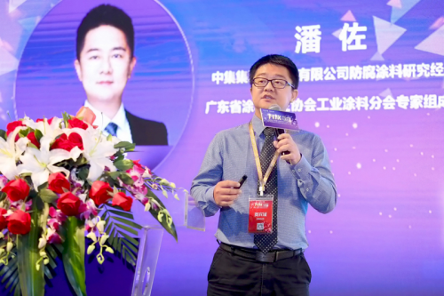 專題演講環節,中集集團集裝箱控股有限公司防腐涂料研究經理潘佐從集裝箱水性漆應用研究\集裝箱環保涂裝工藝升級探索兩方面著手,深入講解了集裝箱的水性涂料研發及應用、集裝箱涂料性能、產品質量檢測及對集裝箱涂裝線自動化升級的思考。