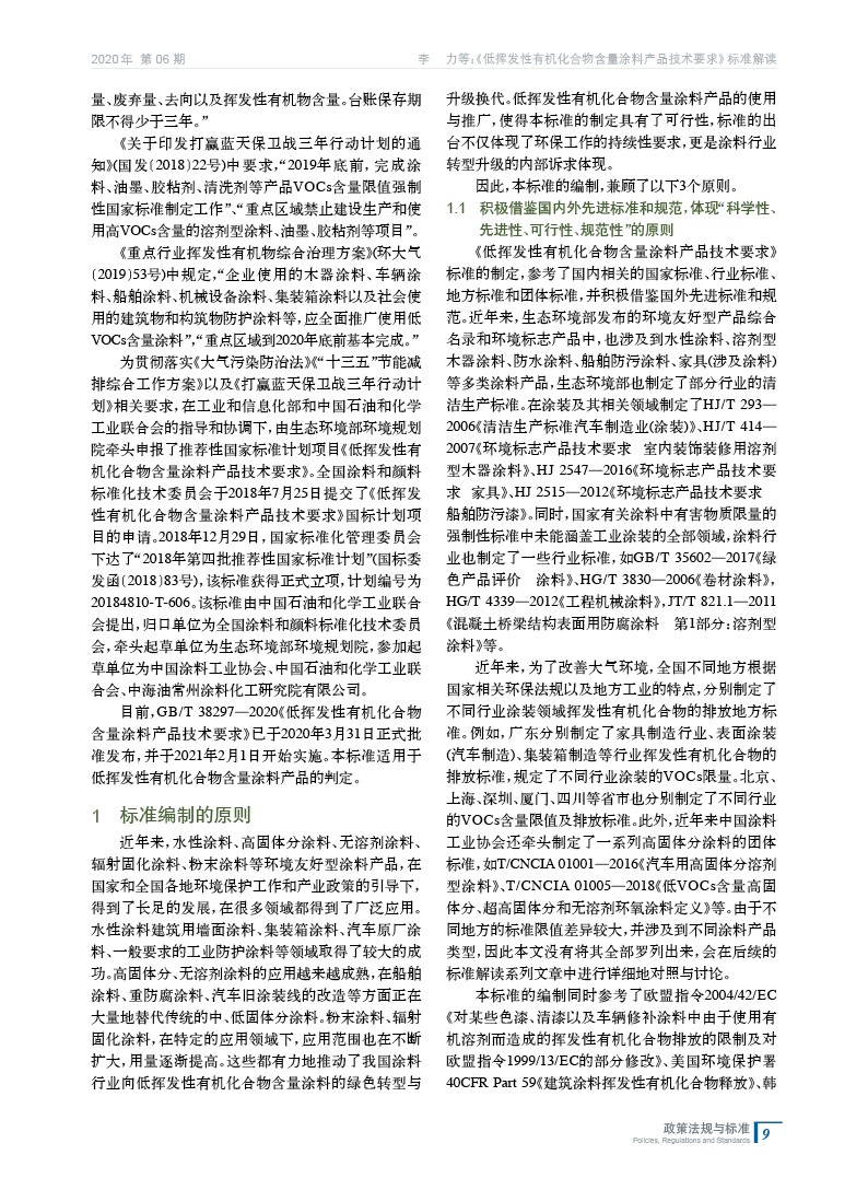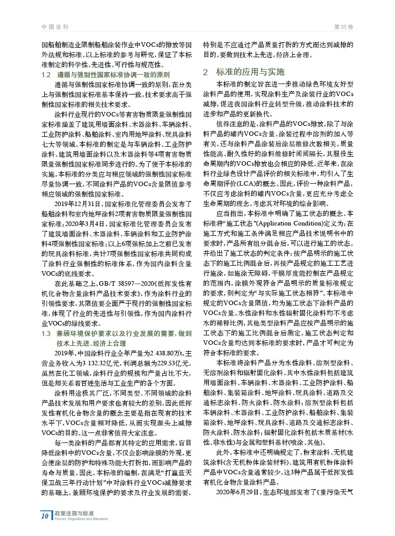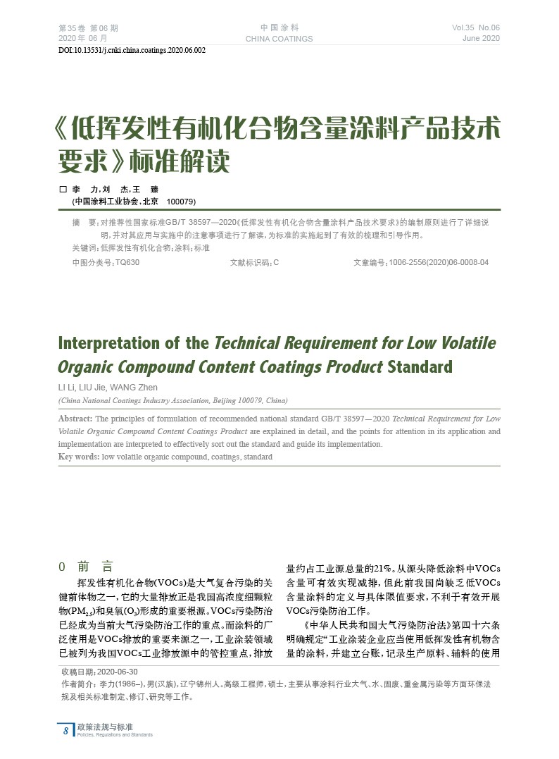 對推薦性國家標準GB/T 38597—2020《低揮發性有機化合物含量涂料產品技術要求》的編制原則進行了詳細說明,并對其應用與實施中的注意事項進行了解讀,為標準的實施起到了有效的梳理和引導作用。