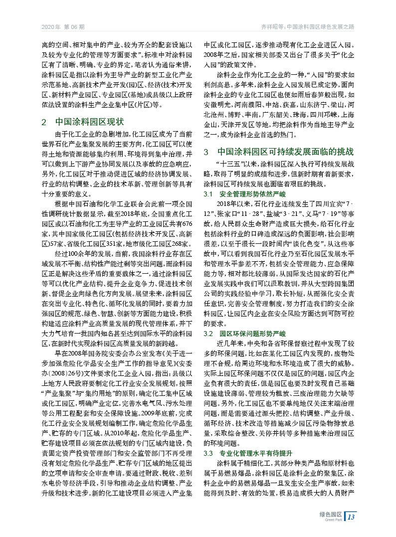 隨著“退城入園”政策的推進,涂料企業逐步進入涂料園區,綜述了園區可持續發展面臨的挑戰,并展望了園區未來的發展趨勢。