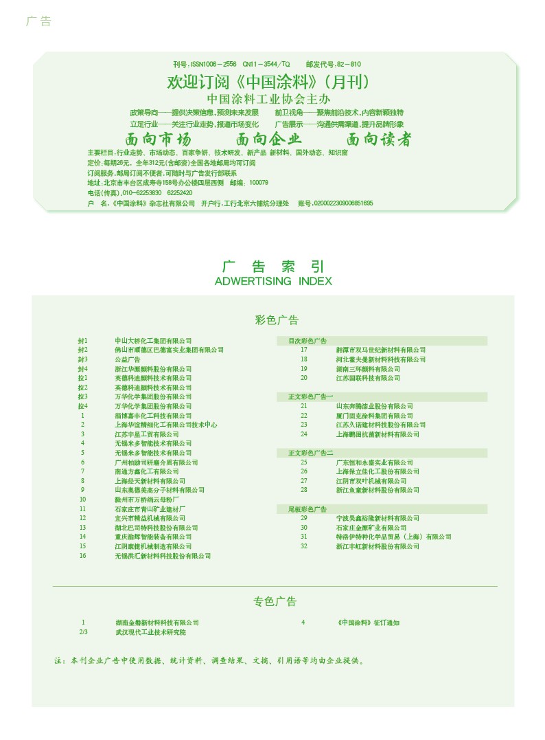 湖南金磐、武漢現(xiàn)代工業(yè)技術(shù)研究院、《中國(guó)涂料》征訂通知