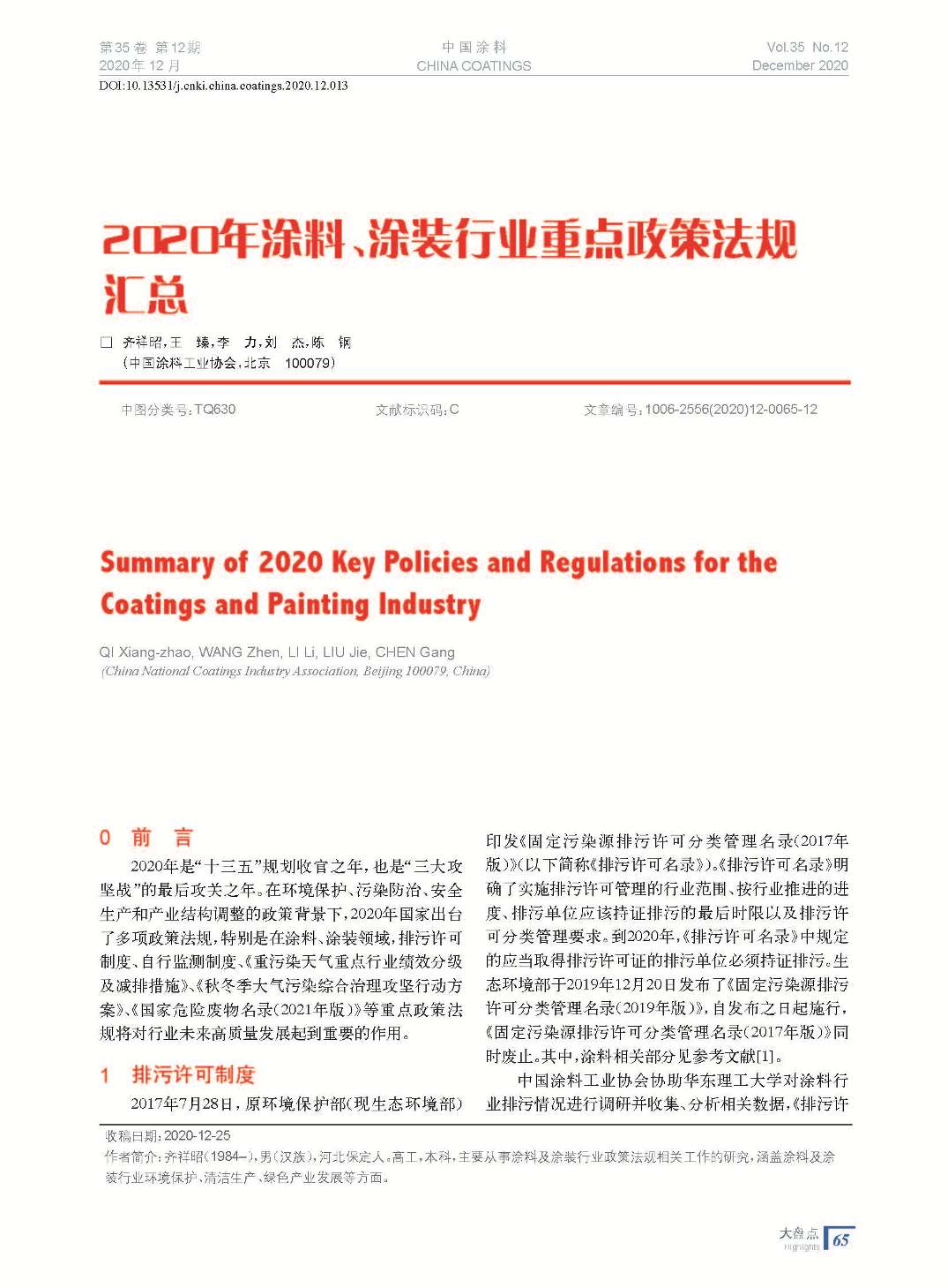 《中國涂料》雜志(文字版)
