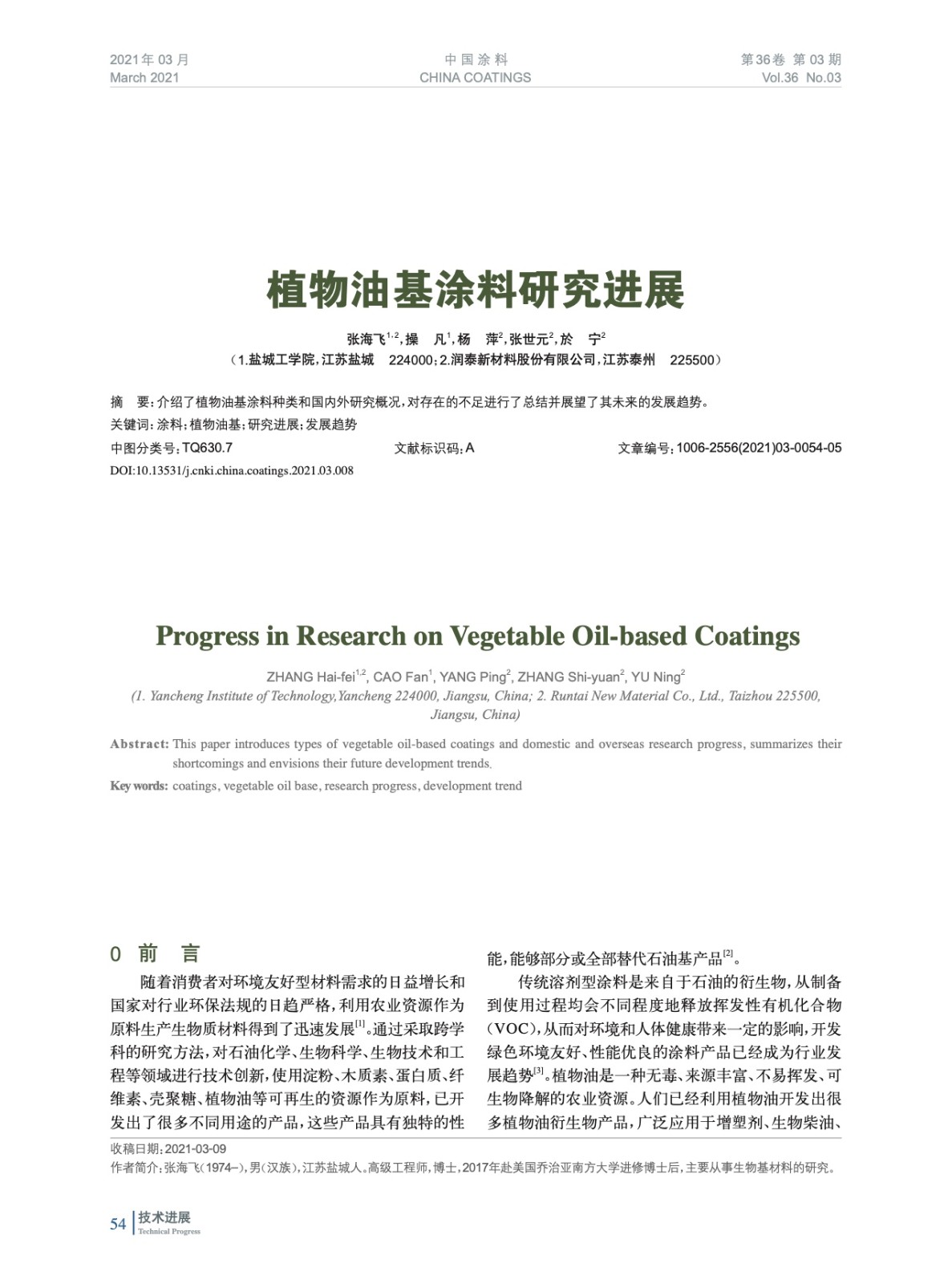本文系作者@張海飛,操 凡,楊 萍,張世元,於 寧 授權(quán)中國涂料網(wǎng)發(fā)表,并經(jīng)中國涂料網(wǎng)編輯,未經(jīng)允許不得轉(zhuǎn)載,如需轉(zhuǎn)載請聯(lián)系chinacoatingnet@vip.163.com
