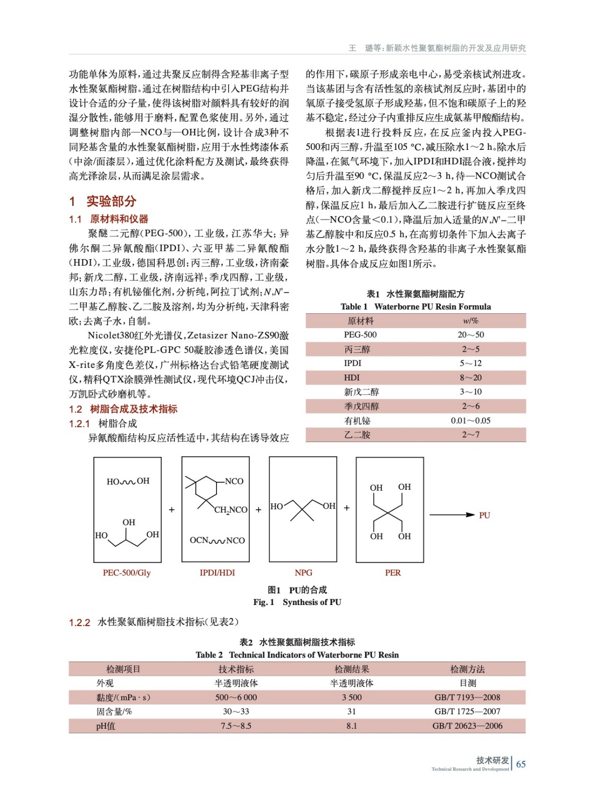 新穎水聚氨酯樹脂的開發及應用研究