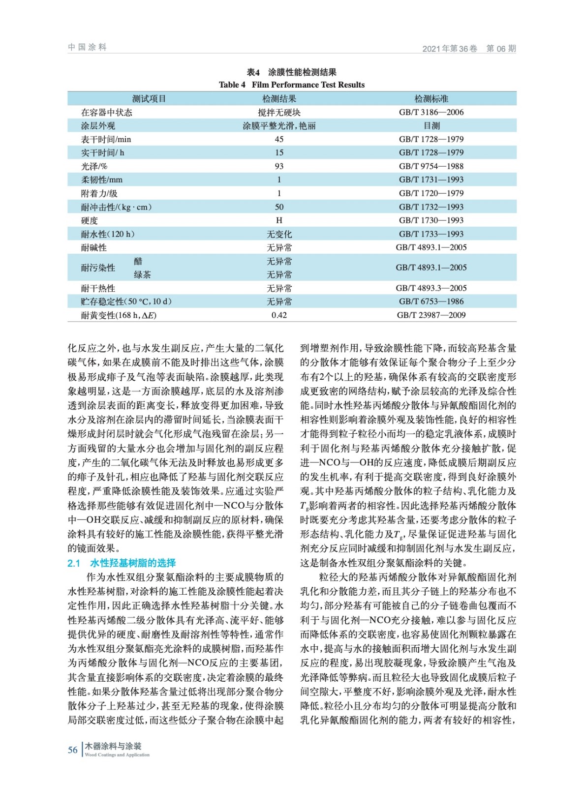 家具用高性能水性雙組分聚氨酯亮光色漆的制備及性能研究