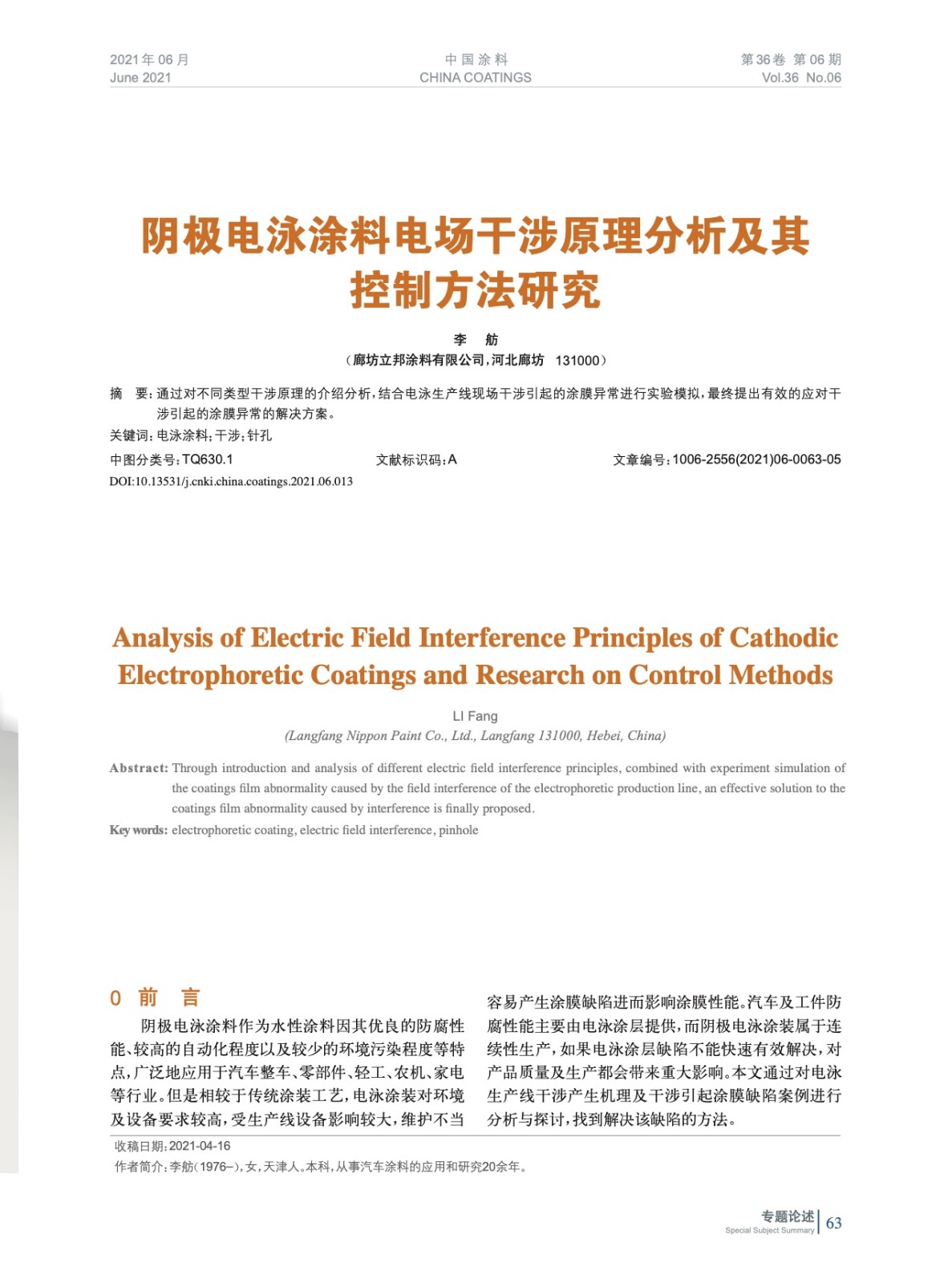 通過對不同類型干涉原理的介紹分析,結合電泳生產線現場干涉引起的涂膜異常進行實驗模擬,最終提出有效的應對干涉引起的涂膜異常的解決方案。
