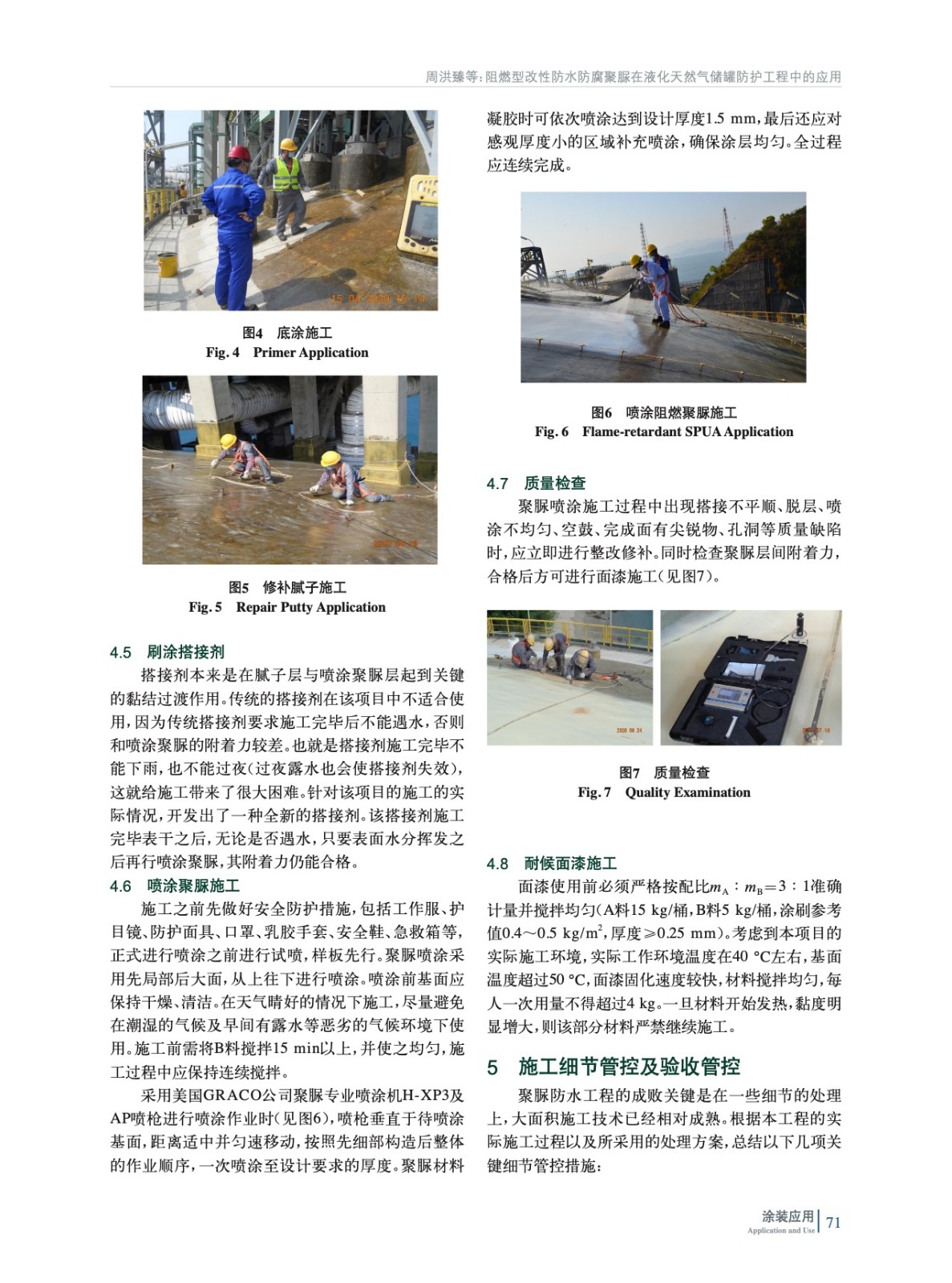 介紹了液化天然氣儲罐外罐的防護基本要求、材料選型原則,以及該防護工程概況、施工重點與難點、施工方案等。重點介紹了噴涂阻燃型防水防腐聚脲在該工程中的應用情況,包括聚脲施工環境要求及實際環境狀況、施工工序、涂層質量要求及驗收標準等。