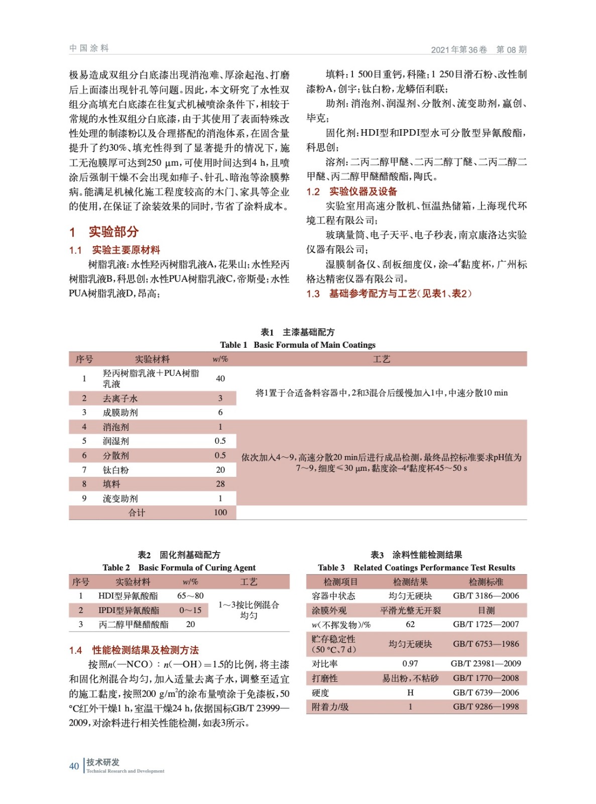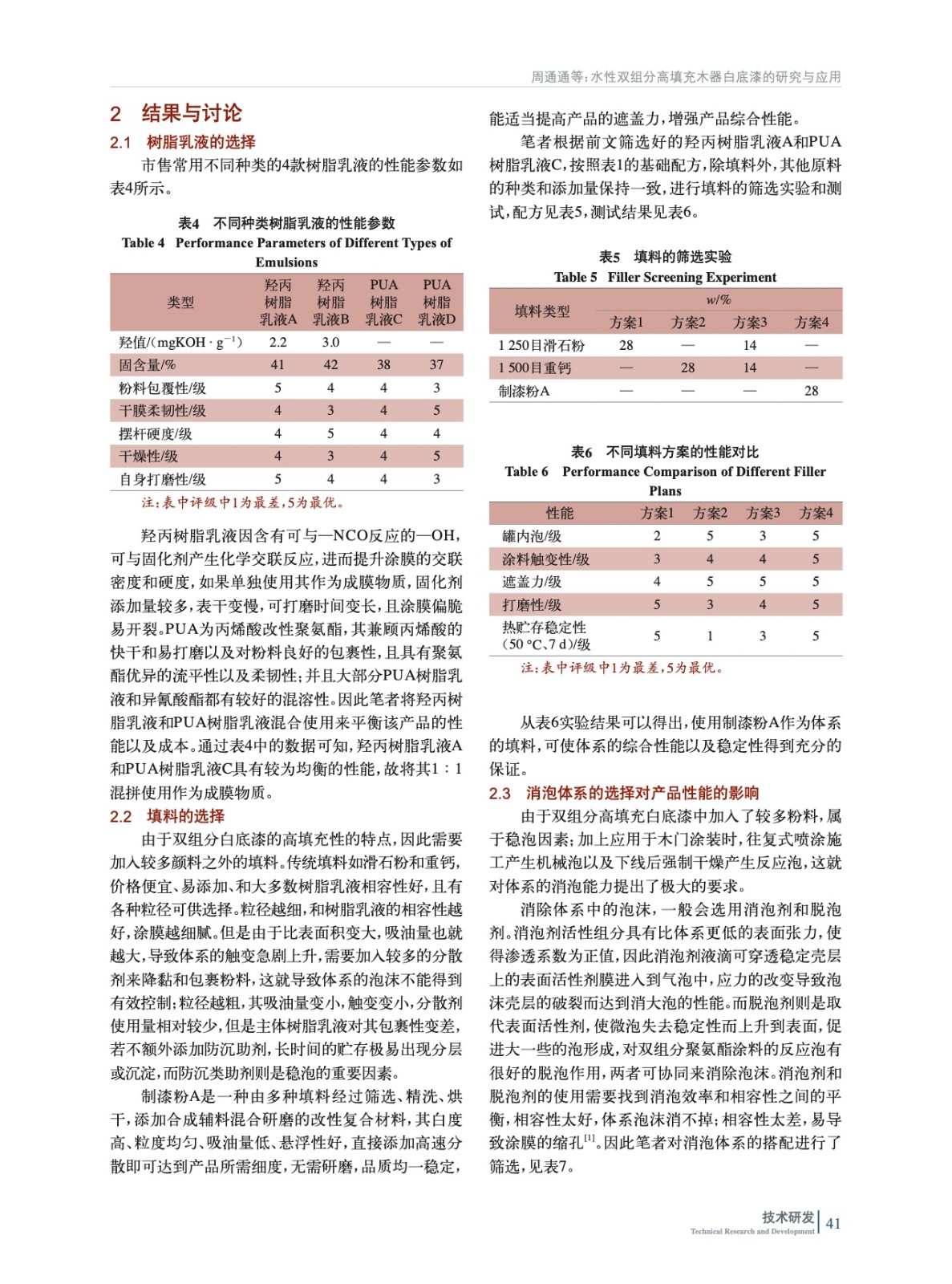 針對高填充的水性雙組分白底漆,從樹脂乳液選擇、填料篩選、消泡體系搭配等方面進行探討,通過實驗論證以及往復式機械噴涂應用測試,驗證了其在工業化應用上的可行性。