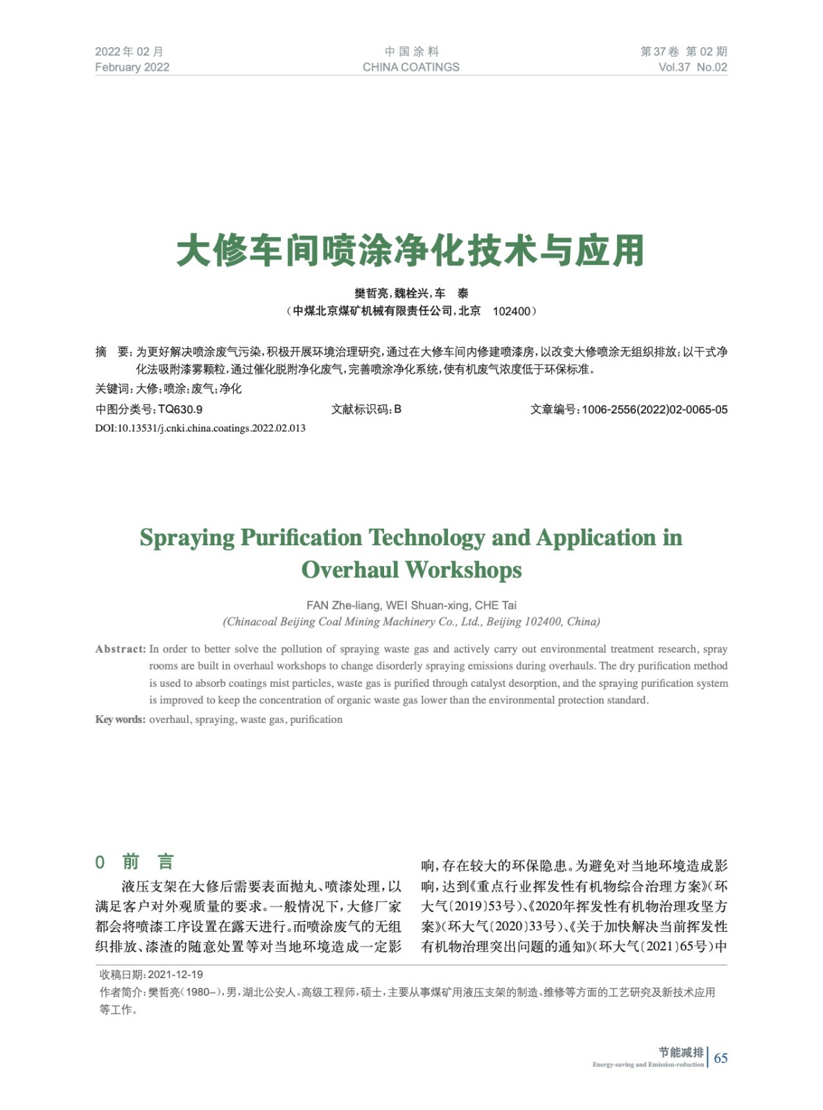 本文系作者@樊哲亮,魏栓興,車 泰 授權中國涂料網發表,并經中國涂料網編輯,未經允許不得轉載,如需轉載請聯系chinacoatingnet@vip.163.com