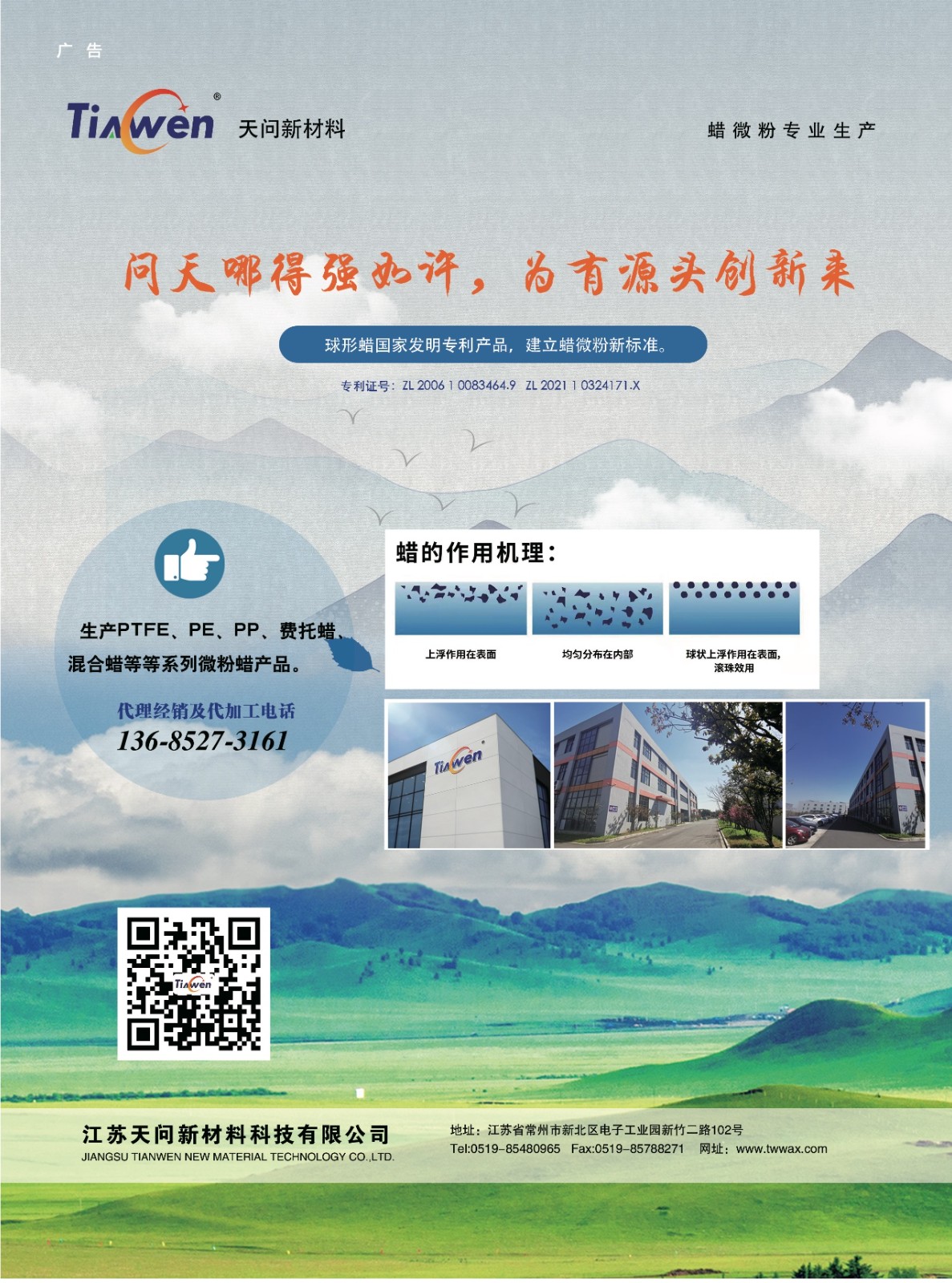 封1:萬華化學集團股份有限公司;封2:江蘇天問新材料科技有限公司;封3:公益廣告;封4:浙江華源顏料股份有限公司