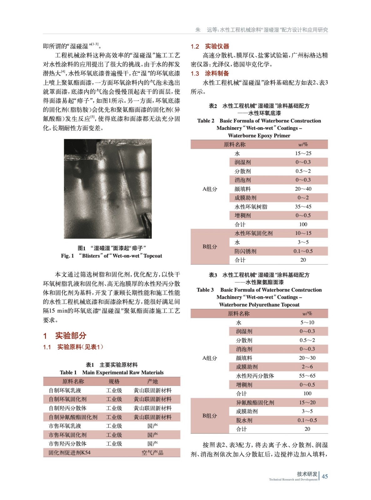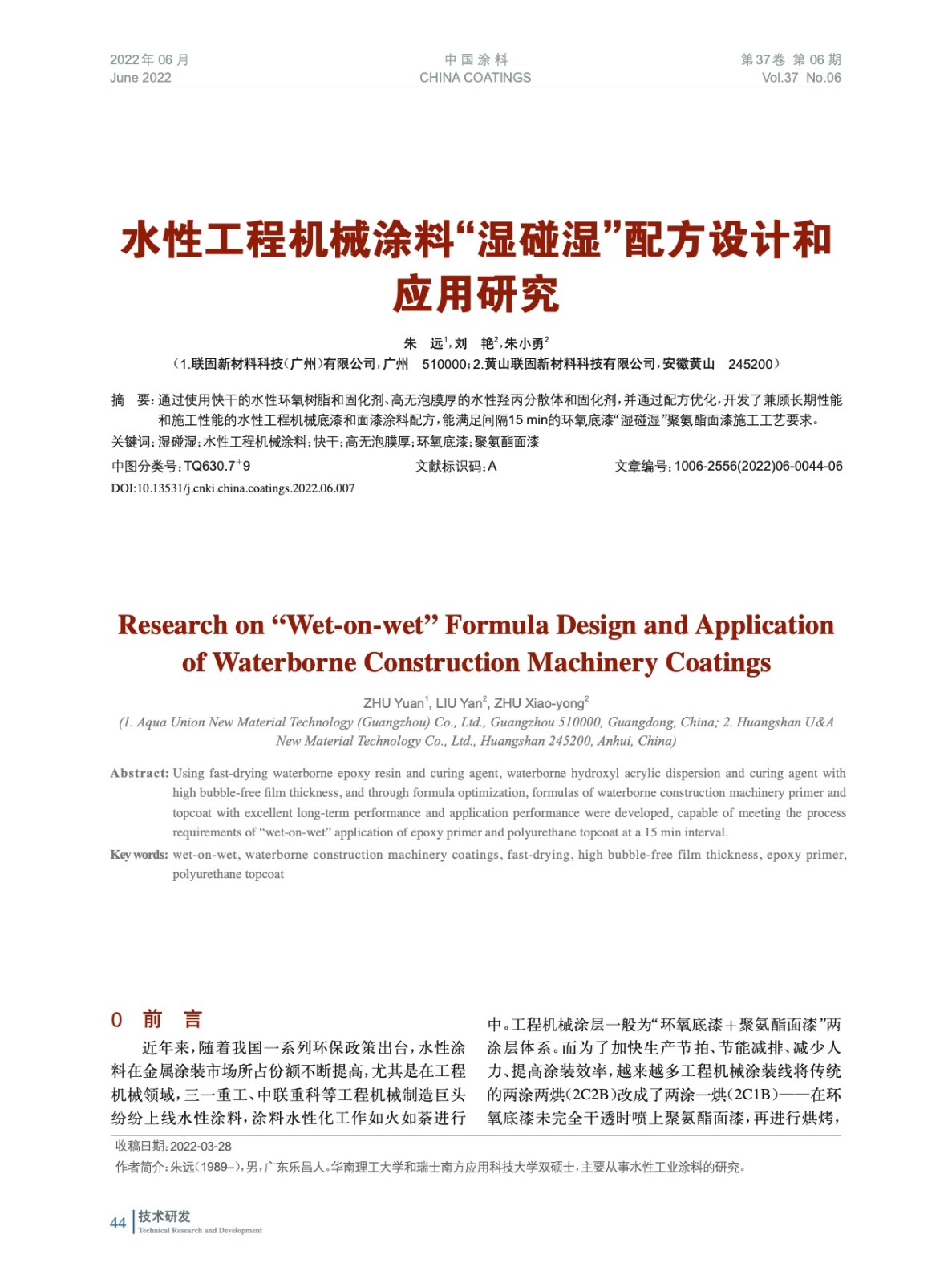 水性工程機械涂料“濕碰濕”配方設計和應用研究
