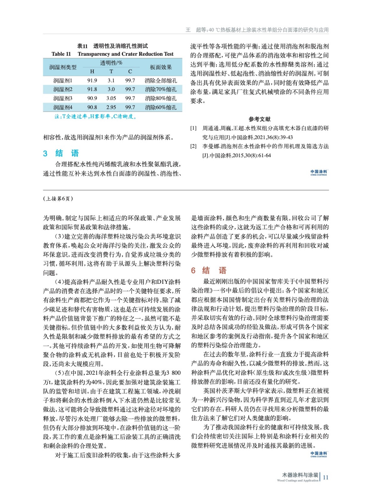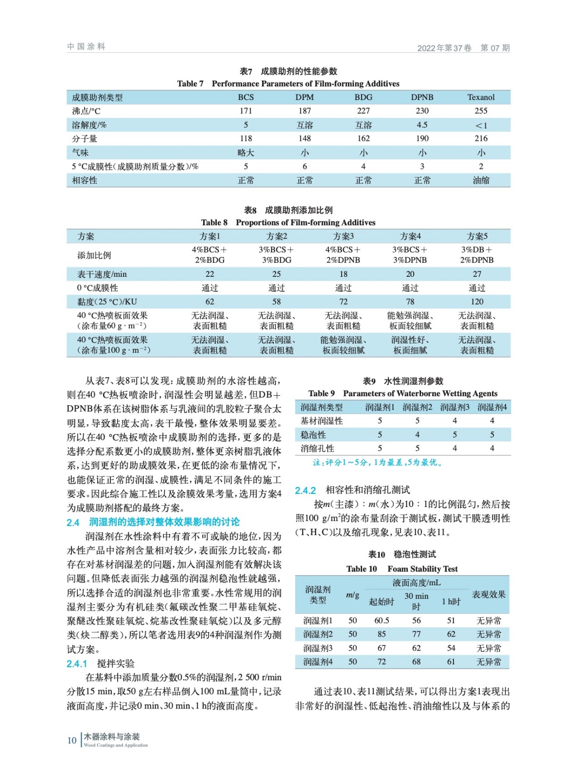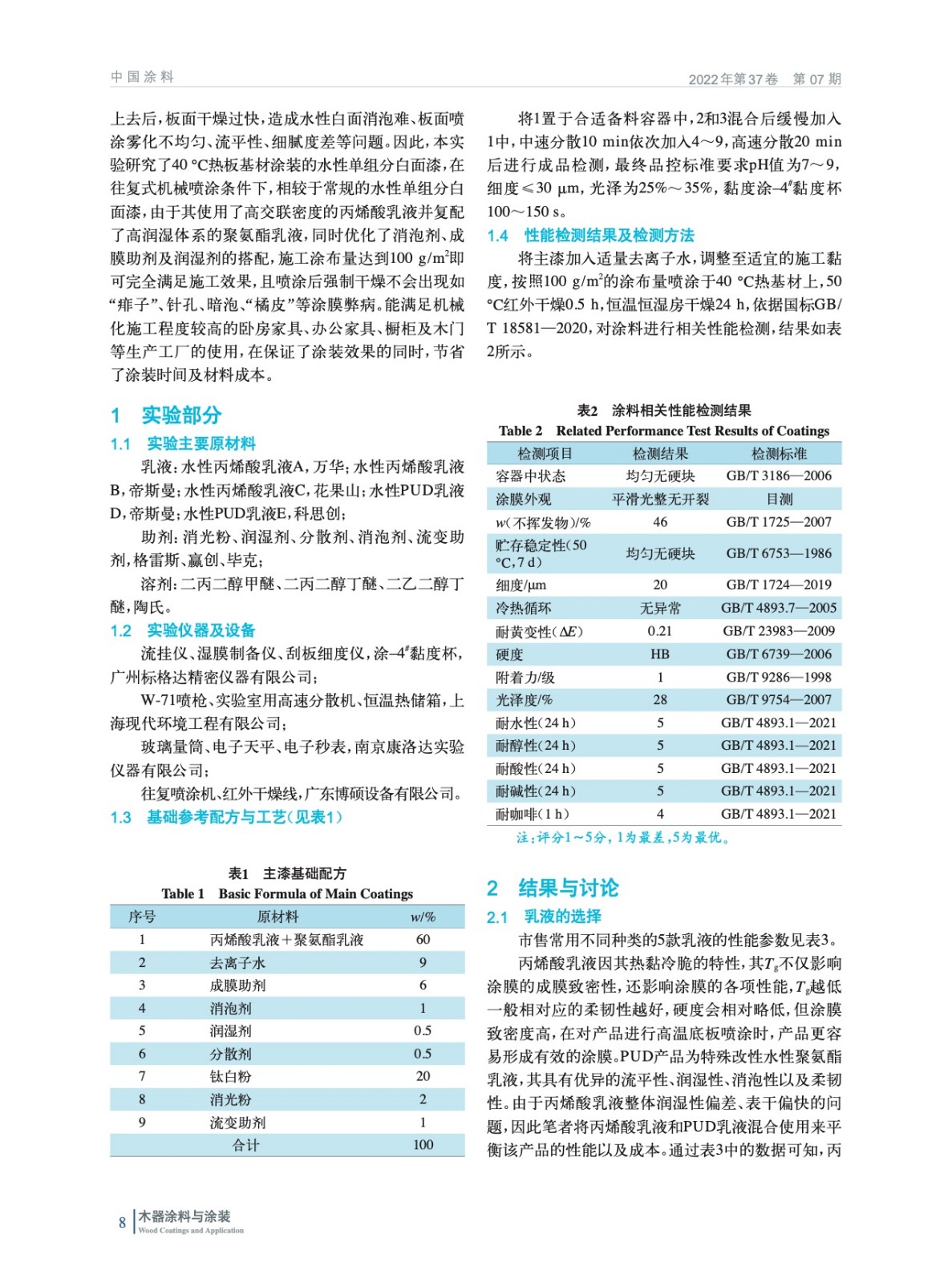針對40 ℃熱板基材涂裝的水性單組分白面漆,從不同乳液類型選擇、成膜助劑篩選、消泡劑及潤濕體系搭配等方面進行探討,通過不同的實驗論證及測試,并通過往復機械噴涂應用測試,驗證了其在工業化生產上的可行性。