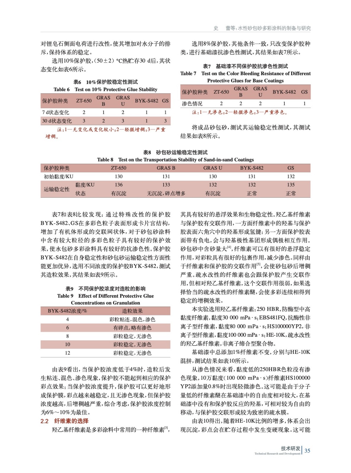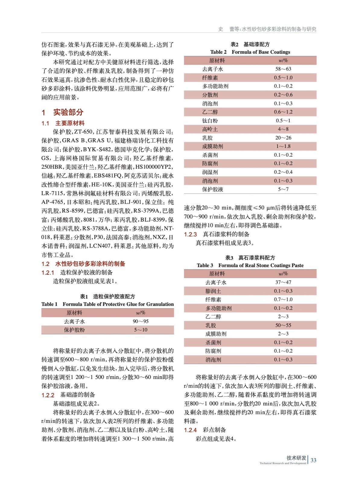 摘要:介紹了一種可以與真石漆相媲美的砂包砂涂料的制備,從保護膠、纖維素、乳膠方面平行實驗對比,最終確定了其最佳添加量。實驗結(jié)果表明,該砂包砂涂料,體系穩(wěn)定,耐水白性優(yōu)異,抗?jié)B色性好,耐候性佳,施工美觀,凹凸感強,且較真石漆耗量少,價格低,前景可觀。