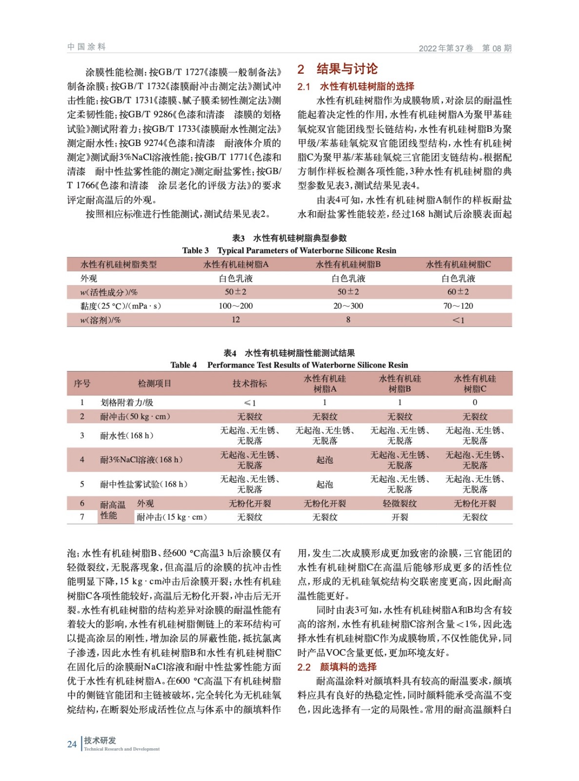介紹了一種水性有機硅耐高溫涂料的制備方法,從樹脂、助劑、顏填料及固化條件的選擇等方面對配方進行了優化,開發出水性有機硅耐高溫涂料,可以承受600 ℃高溫,具有優異的機械性能和防腐性能。