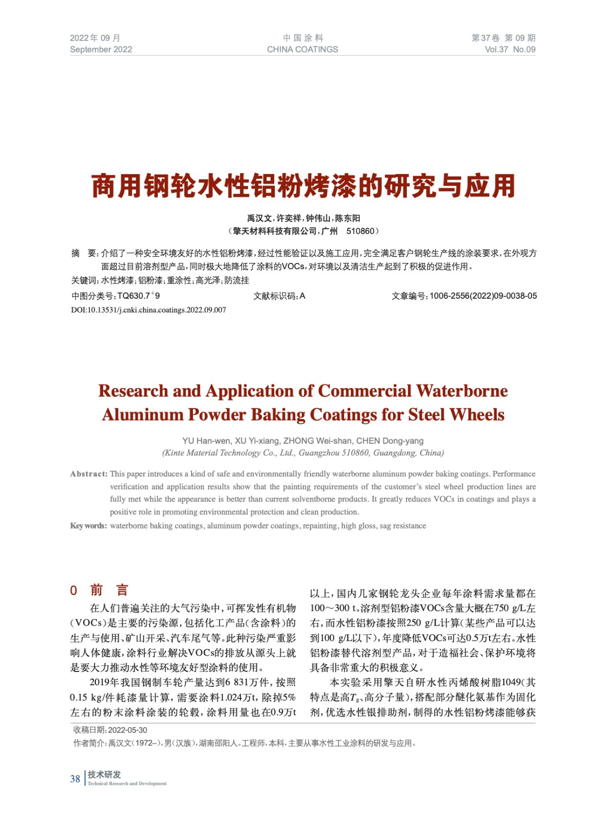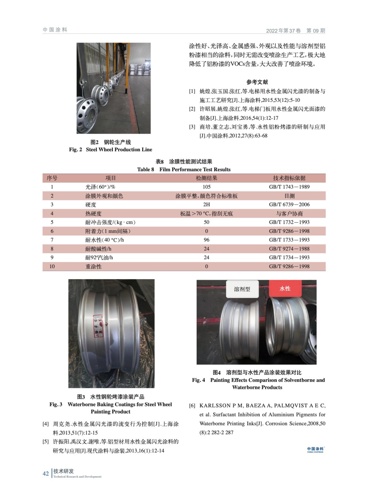 介紹了一種安全環境友好的水性鋁粉烤漆,經過性能驗證以及施工應用,完全滿足客戶鋼輪生產線的涂裝要求,在外觀方面超過目前溶劑型產品,同時極大地降低了涂料的VOCs,對環境以及清潔生產起到了積極的促進作用。