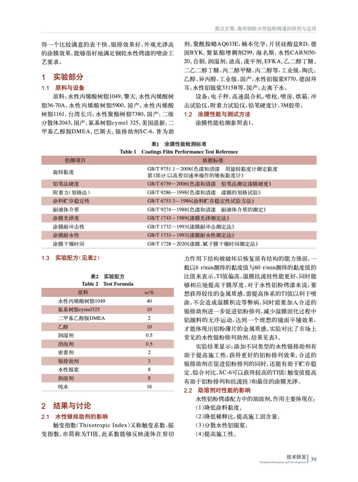 商用鋼輪水性鋁粉烤漆的研究與應用