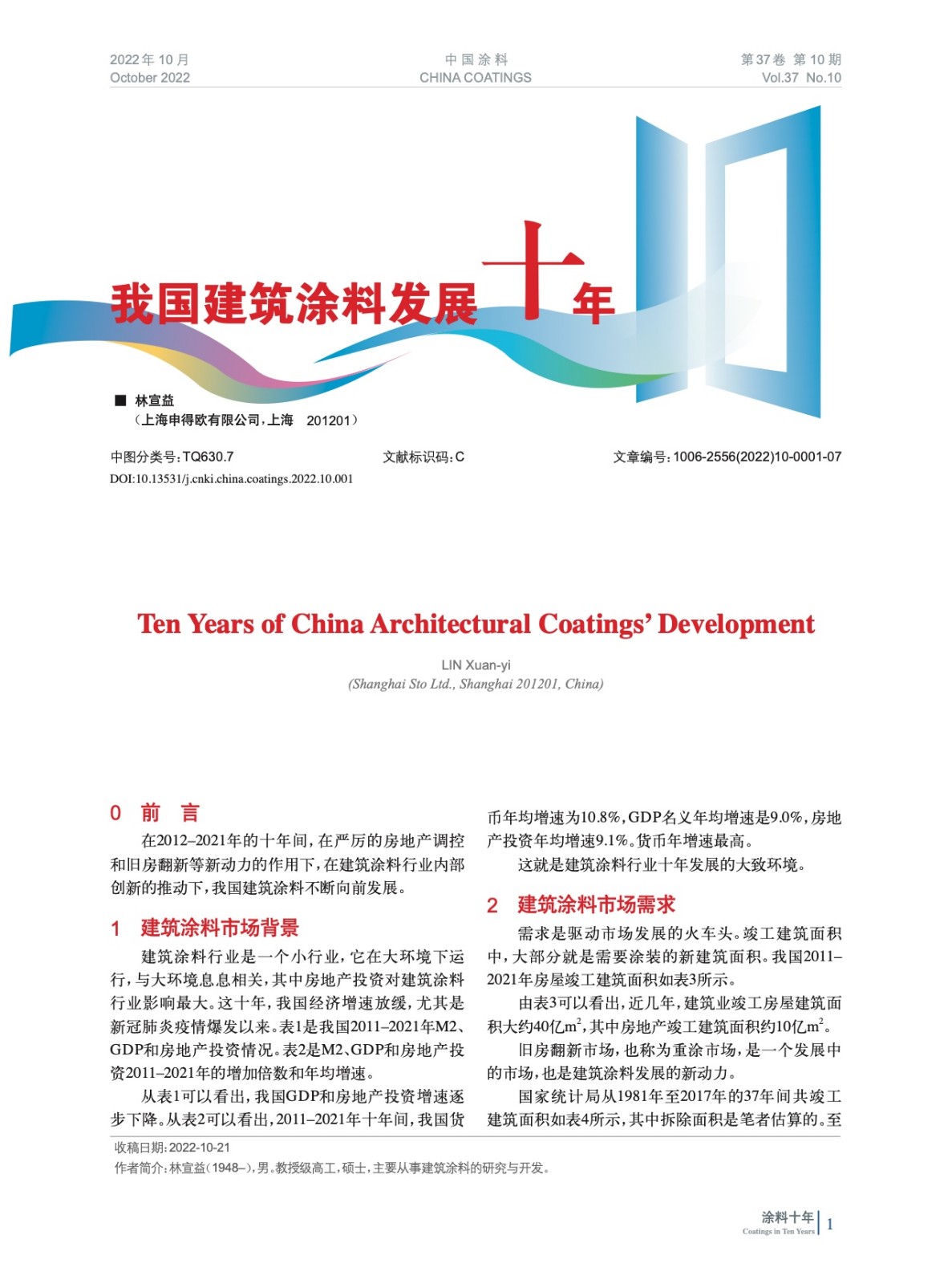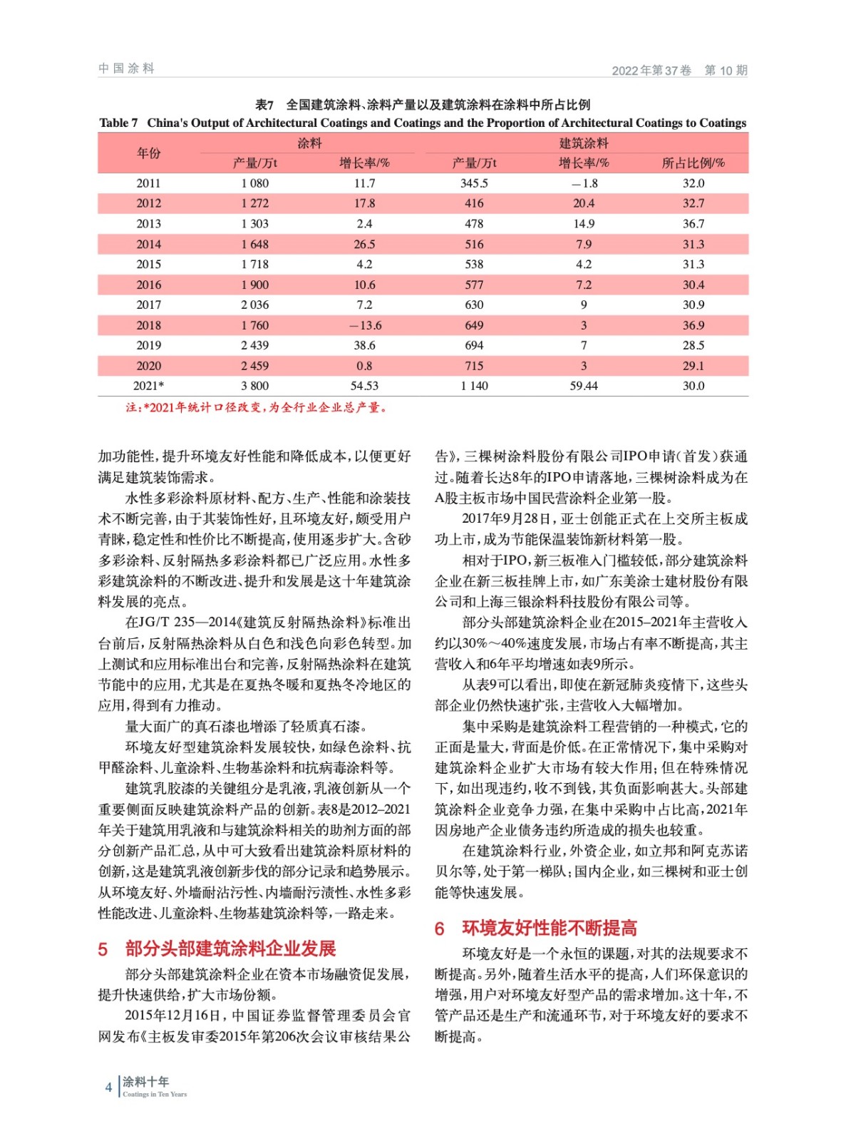在2012–2021年的十年間,在嚴厲的房地產調控 和舊房翻新等新動力的作用下,在建筑涂料行業內部 創新的推動下,我國建筑涂料不斷向前發展。