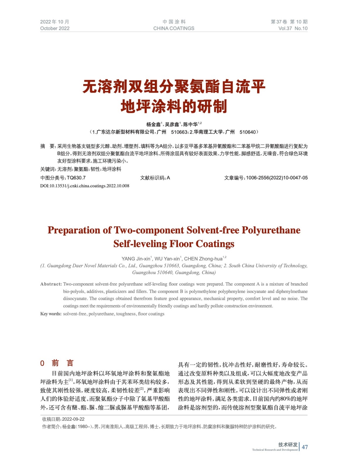 本文系作者@楊金鑫,吳彥鑫,陳中華 授權中國涂料網發表,并經中國涂料網編輯,未經允許不得轉載,如需轉載請聯系chinacoatingnet@vip.163.com