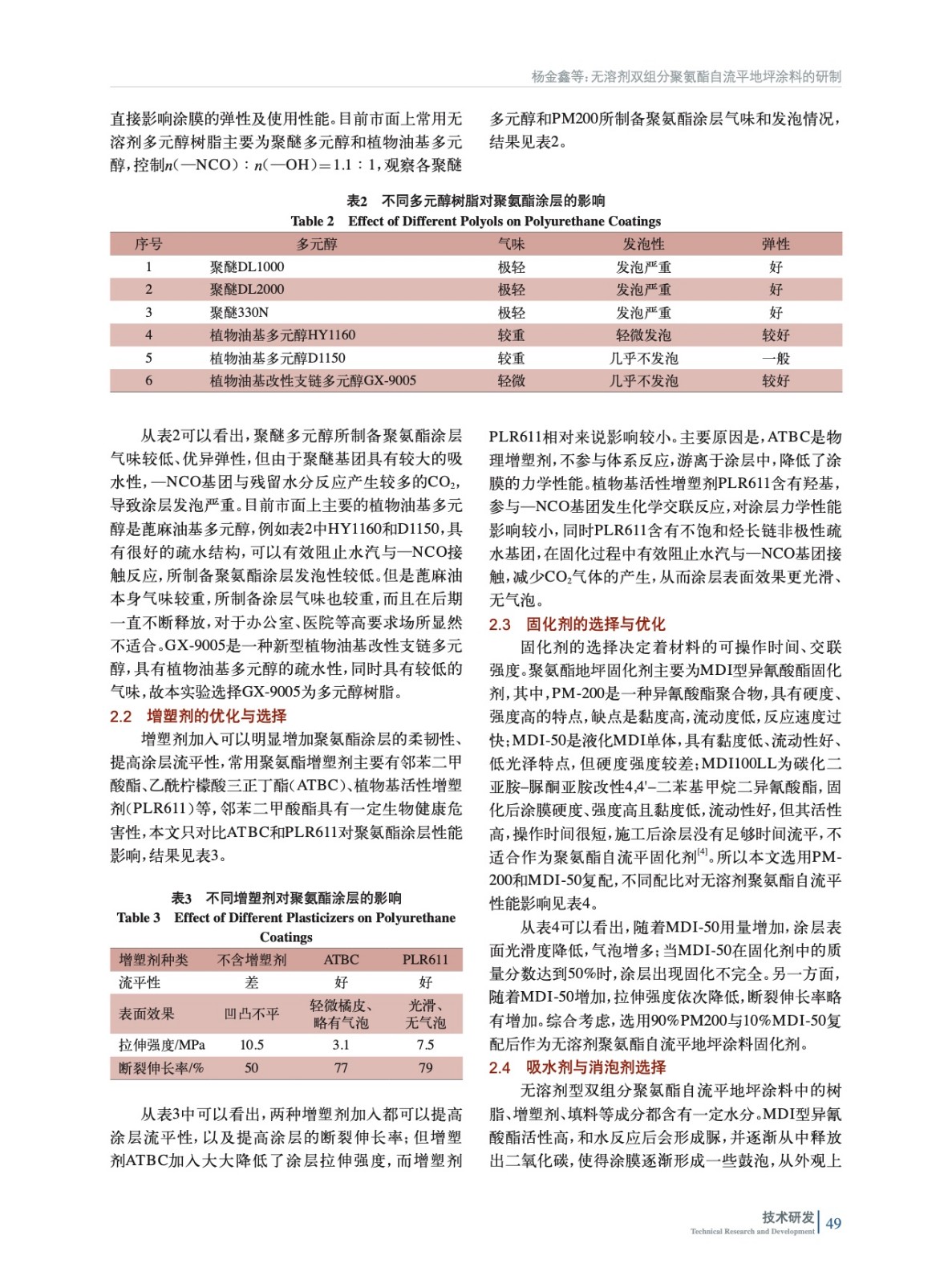 無溶劑雙組分聚氨酯自流平地坪涂料的研制