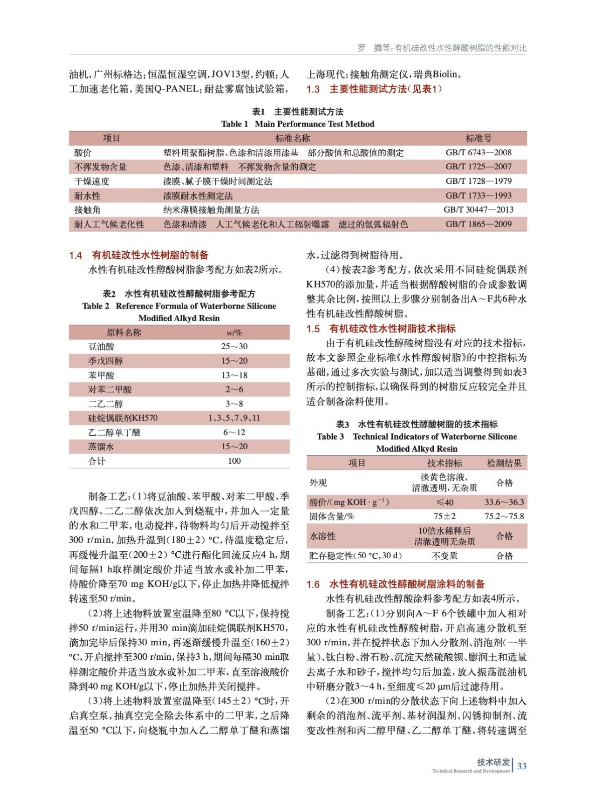 有機硅改性水性醇酸樹脂的性能對比