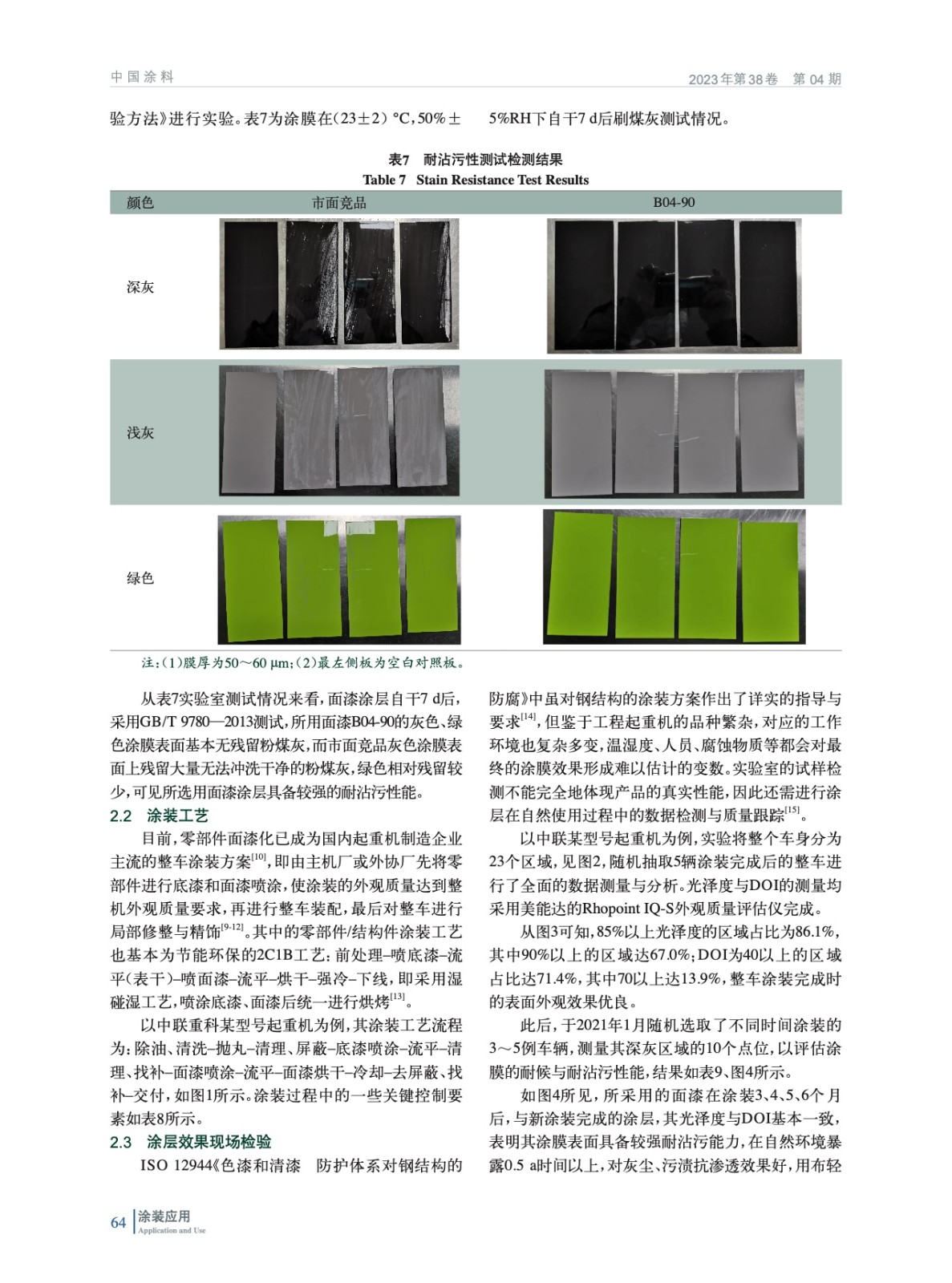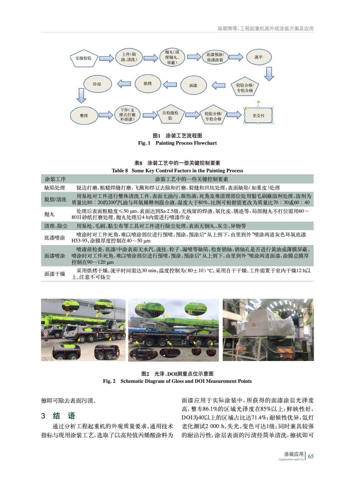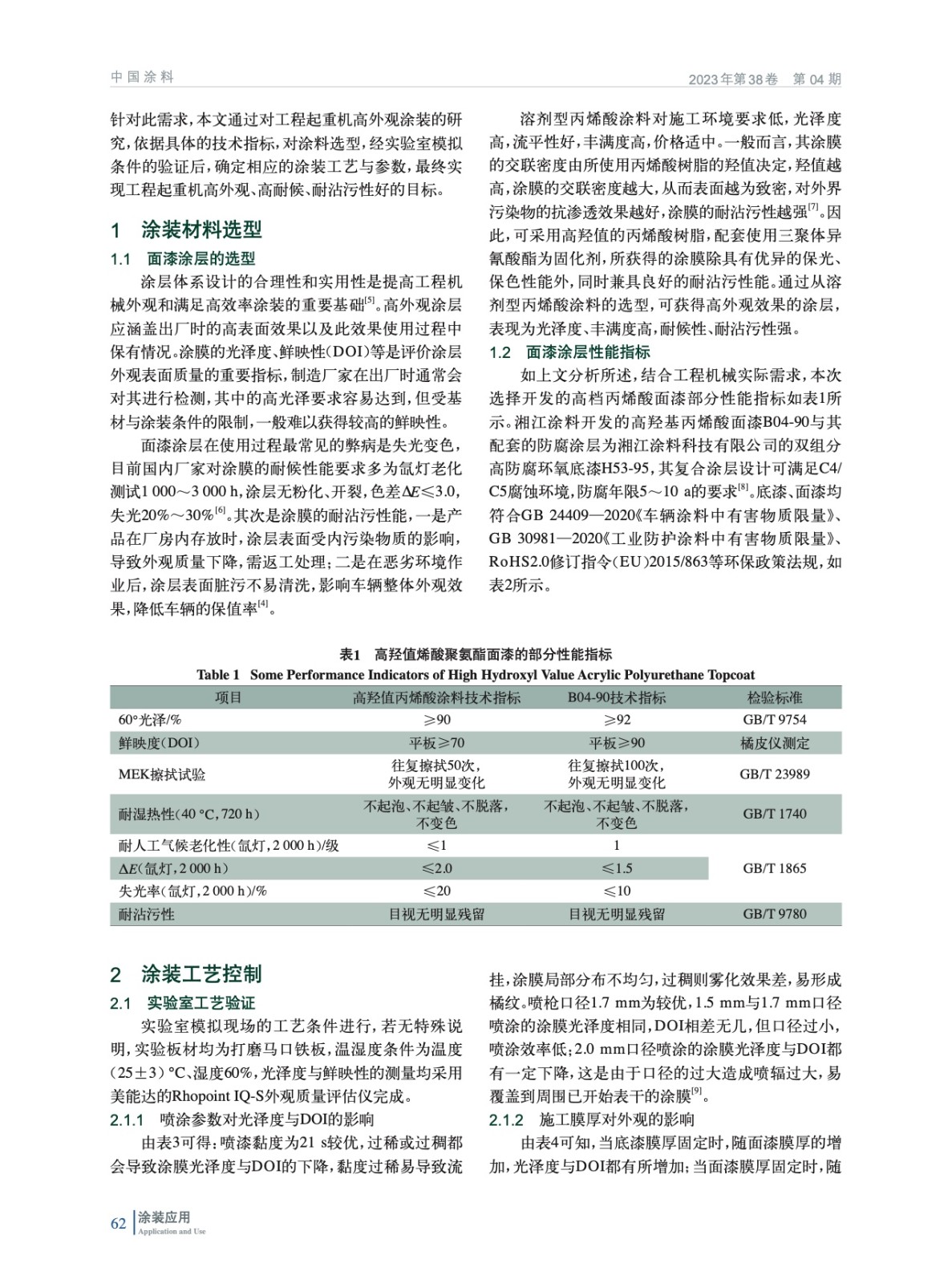 分析了工程起重機涂層的外觀質量要求,并根據工程起重機的通用技術指標和現有的涂裝條件,選取以高羥值丙烯酸涂料為面漆涂層,討論了涂裝工藝中的一些關鍵因素,最終實現了工程起重機的高外觀、高耐候及耐沾污的涂裝。