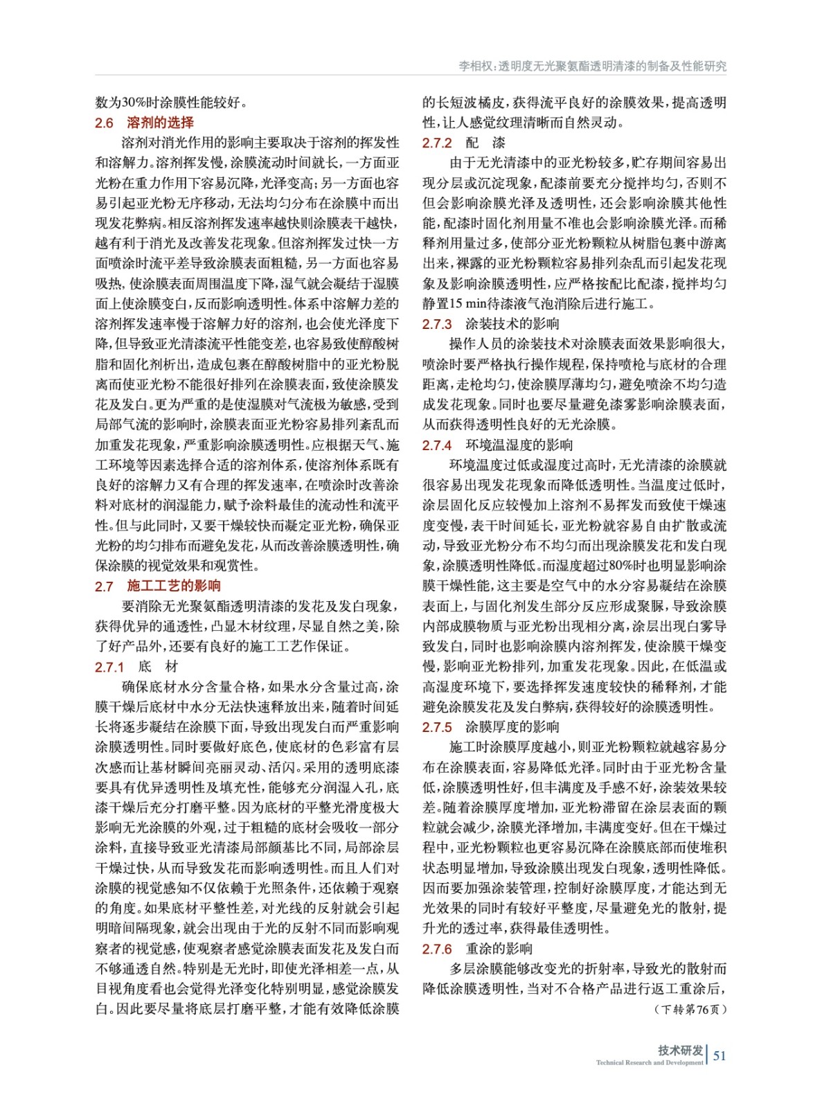 透明度無光聚氨酯透明清漆的制備及性能研究