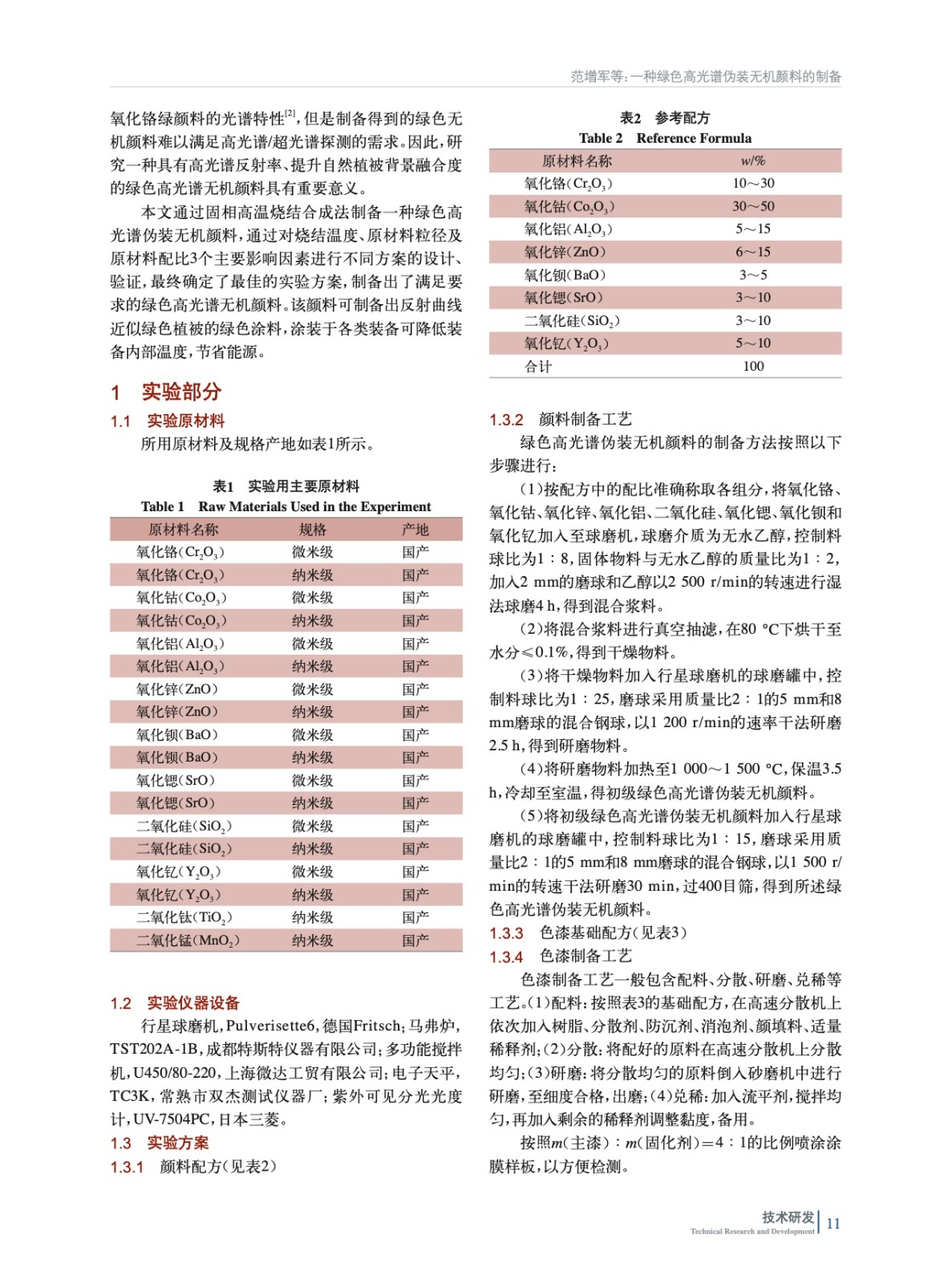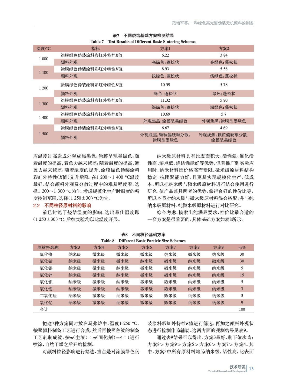 討論了燒結溫度、原材料粒徑、原材料配比3種影響因素對綠色高光譜偽裝無機顏料的影響,通過對顏料外觀、綠色偽裝涂料彩虹外特性(K值)、高光譜反射率進行評價,最終制備出滿足高光譜/超光譜探測需求的無機綠色顏料。在重要設施建筑、武器裝備和器材的偽裝保護上有廣闊的應用前景和意義。