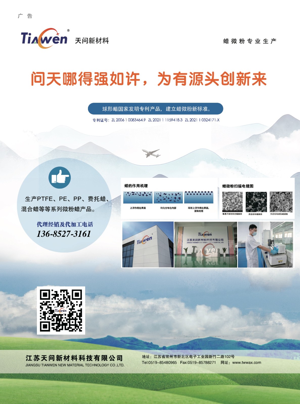 封1:江蘇布威倫環保科技有限公司;封2:上海華誼精細化工有限公司技術中心;封3:江蘇天問新材料科技有限公司;封4:廣東恒和永盛集團有限公司