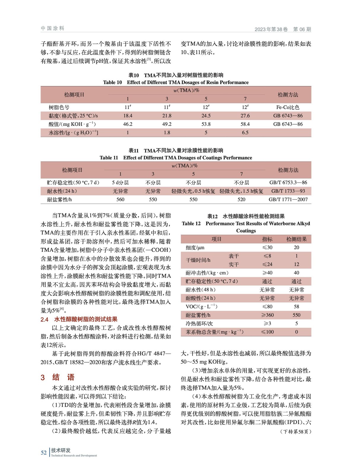 討論了R值[n(—NCO)/n(—OH)]、最終酸值和親水單體的用量3種因素對水性醇酸樹脂性能的影響。通過優選,最終獲得了性價比、環境友好性能均佳的樹脂,并制備了符合標準和滿足客戶流水線需求的色漆產品。