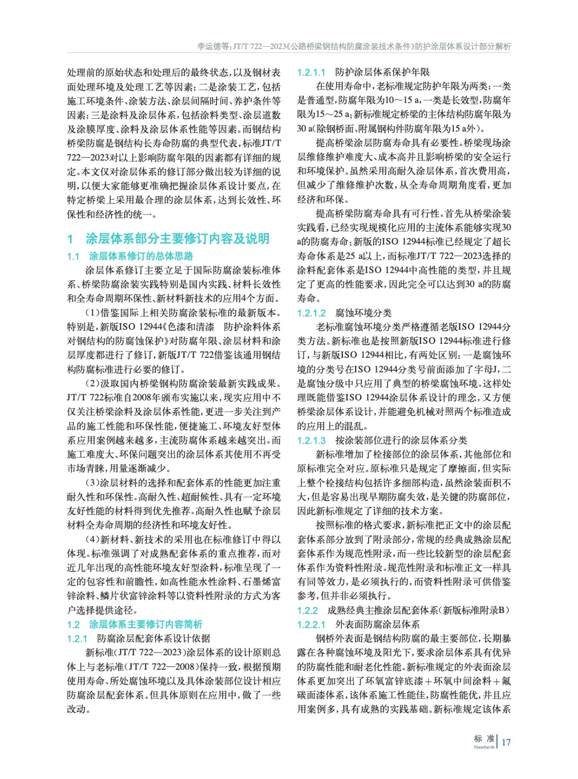 JT/T 722—2023《公路橋梁鋼結構防腐涂裝技術條件》防護涂層體系設計部分解析