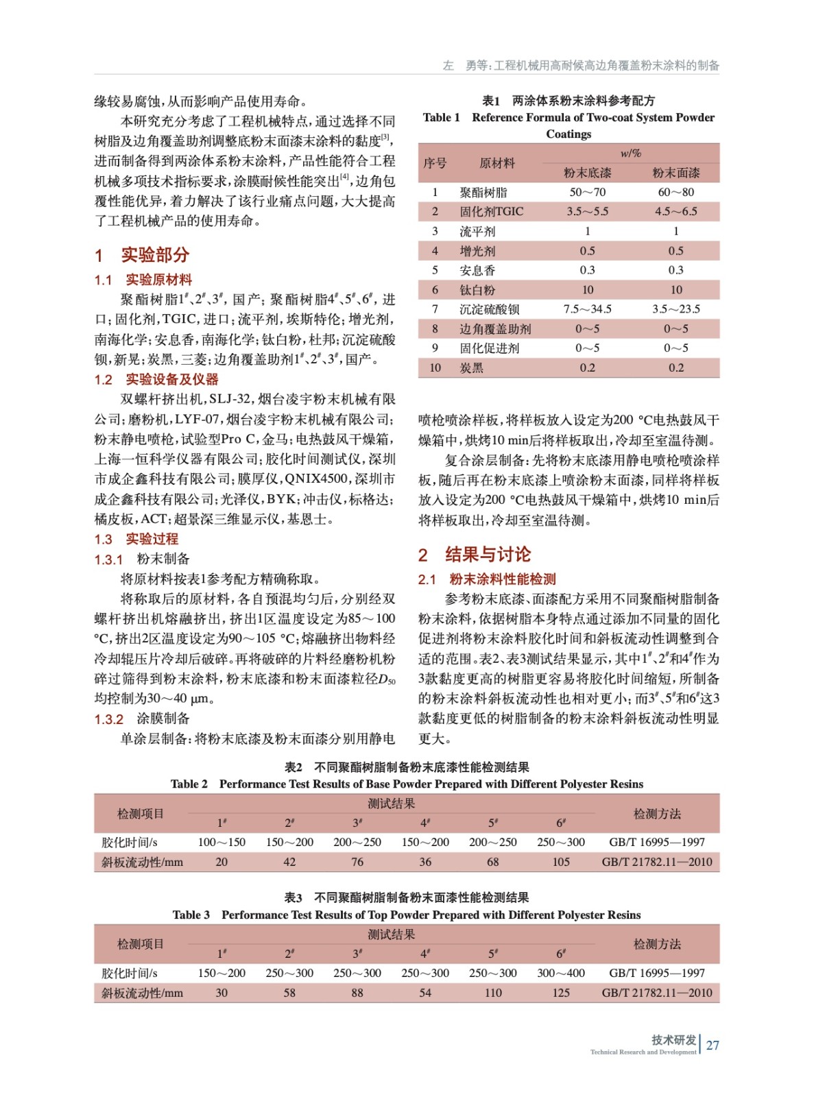 工程機械用高耐候高邊角覆蓋粉末涂料的制備