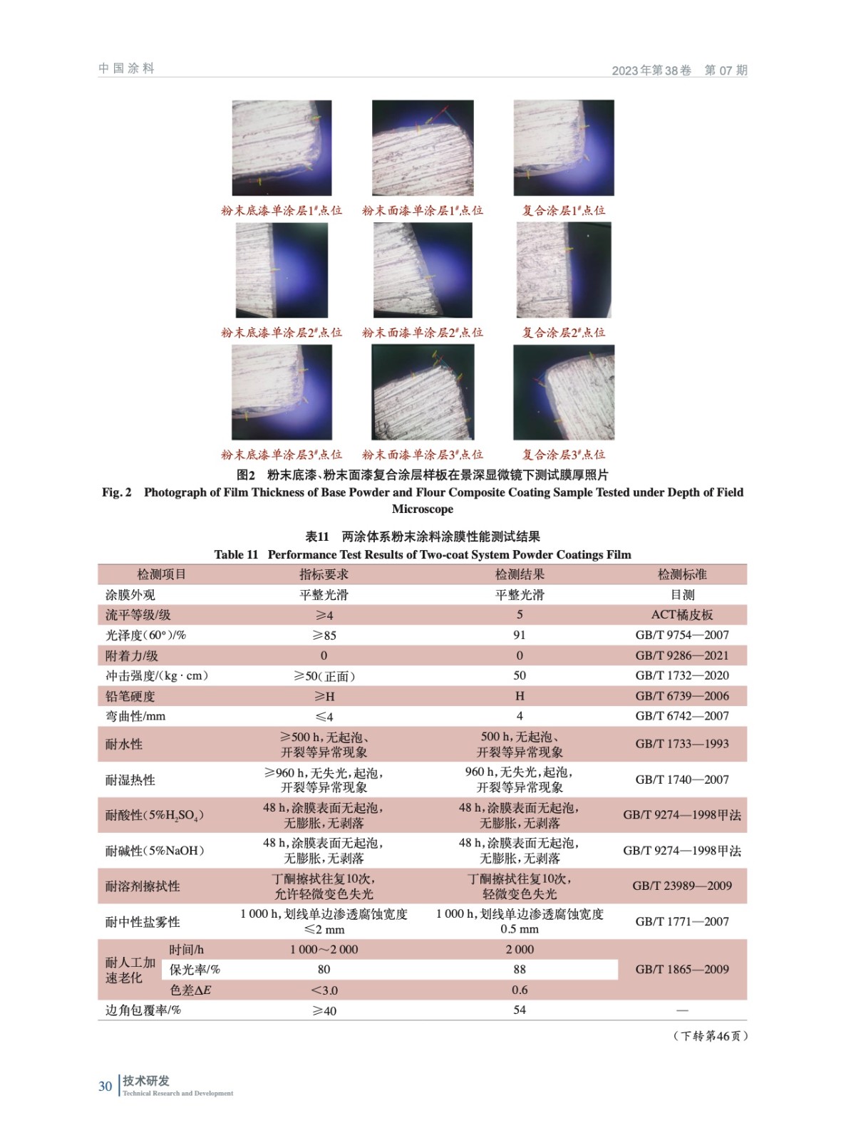 摘要:通過對比研究聚酯樹脂的黏度以及邊角覆蓋助劑對涂膜流平性和邊角包覆效果的影響,并通過調整粉末涂料膠化時間,制備出一種兩涂體系粉末涂料。結果表明,采用高黏度樹脂制備粉末底漆搭配采用低黏度樹脂制備的粉末面漆,并將粉末底漆和粉末面漆分別調整到合適的膠化時間,達到相容性的平衡,所得復合涂層涂膜邊角包覆性好,同時具備優異的裝飾性和保護性。