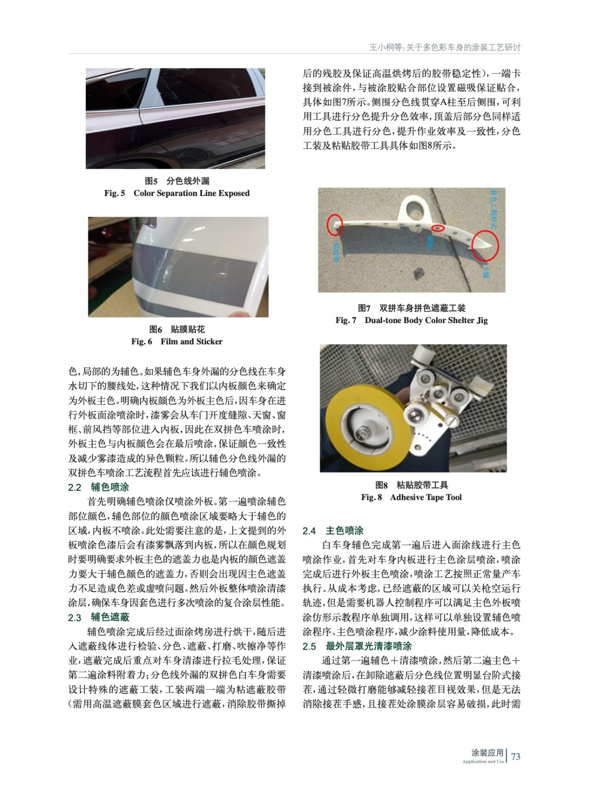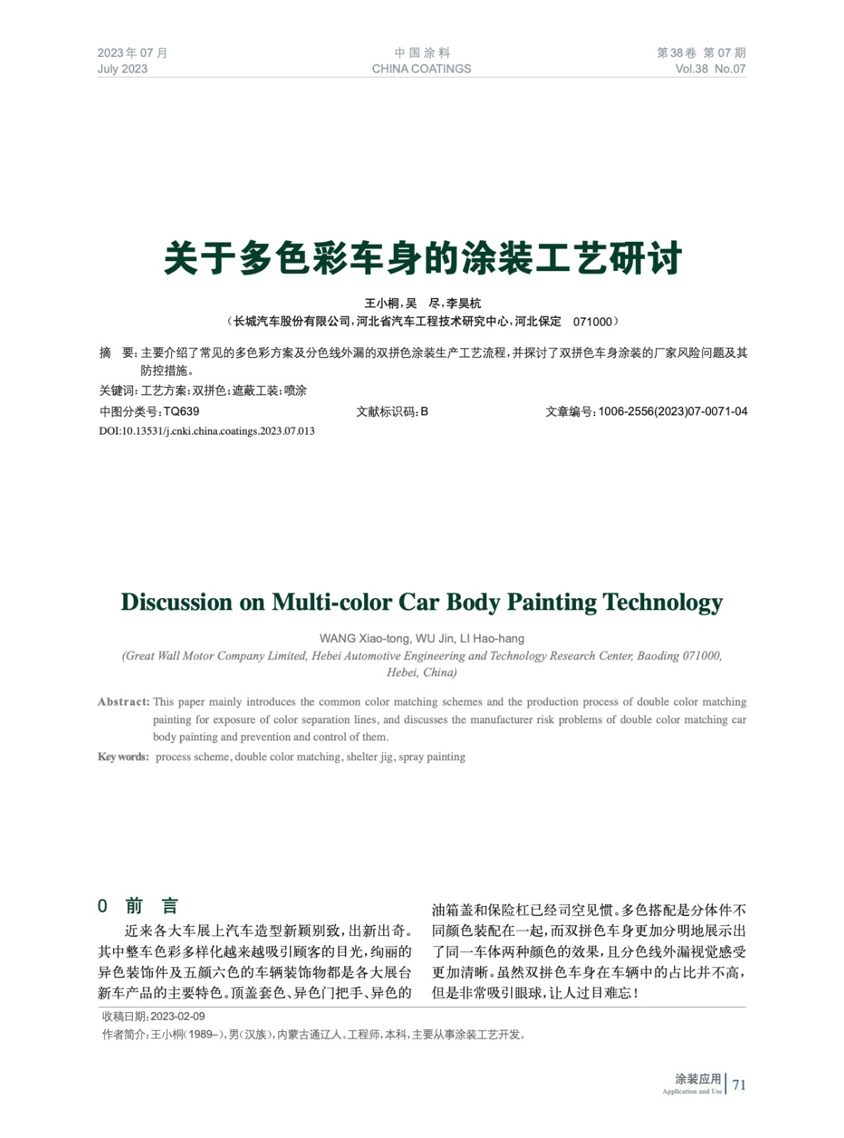 主要介紹了常見的多色彩方案及分色線外漏的雙拼色涂裝生產工藝流程,并探討了雙拼色車身涂裝的廠家風險問題及其防控措施。