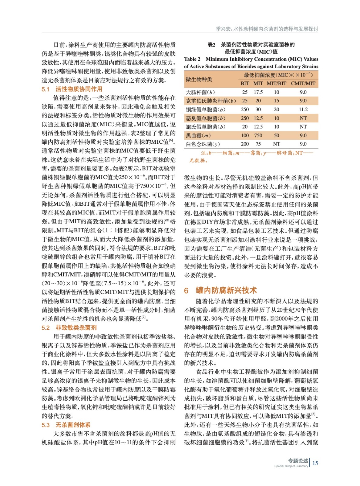 介紹了罐內微生物的種類及來源,以及微生物對涂料產生的不利影響。闡述了罐內殺菌劑活性物質的種類,以及當前應對法規要求所采取的解決方案。最后,提出了罐內殺菌劑未來的發展方向。