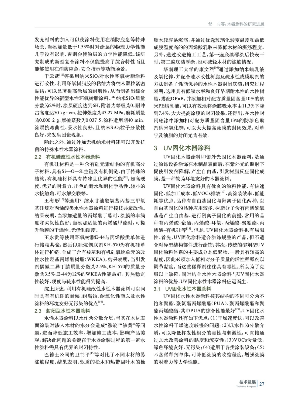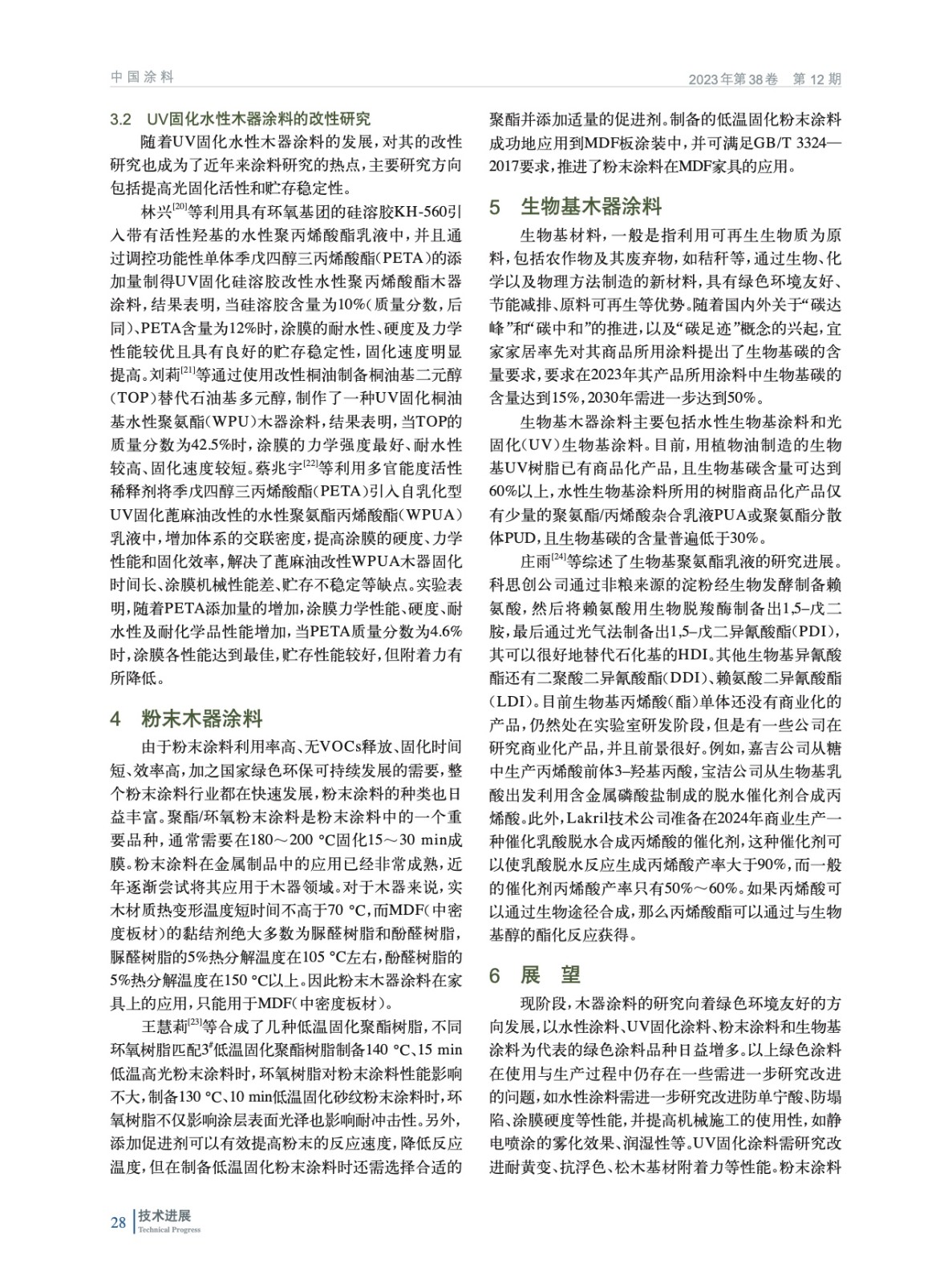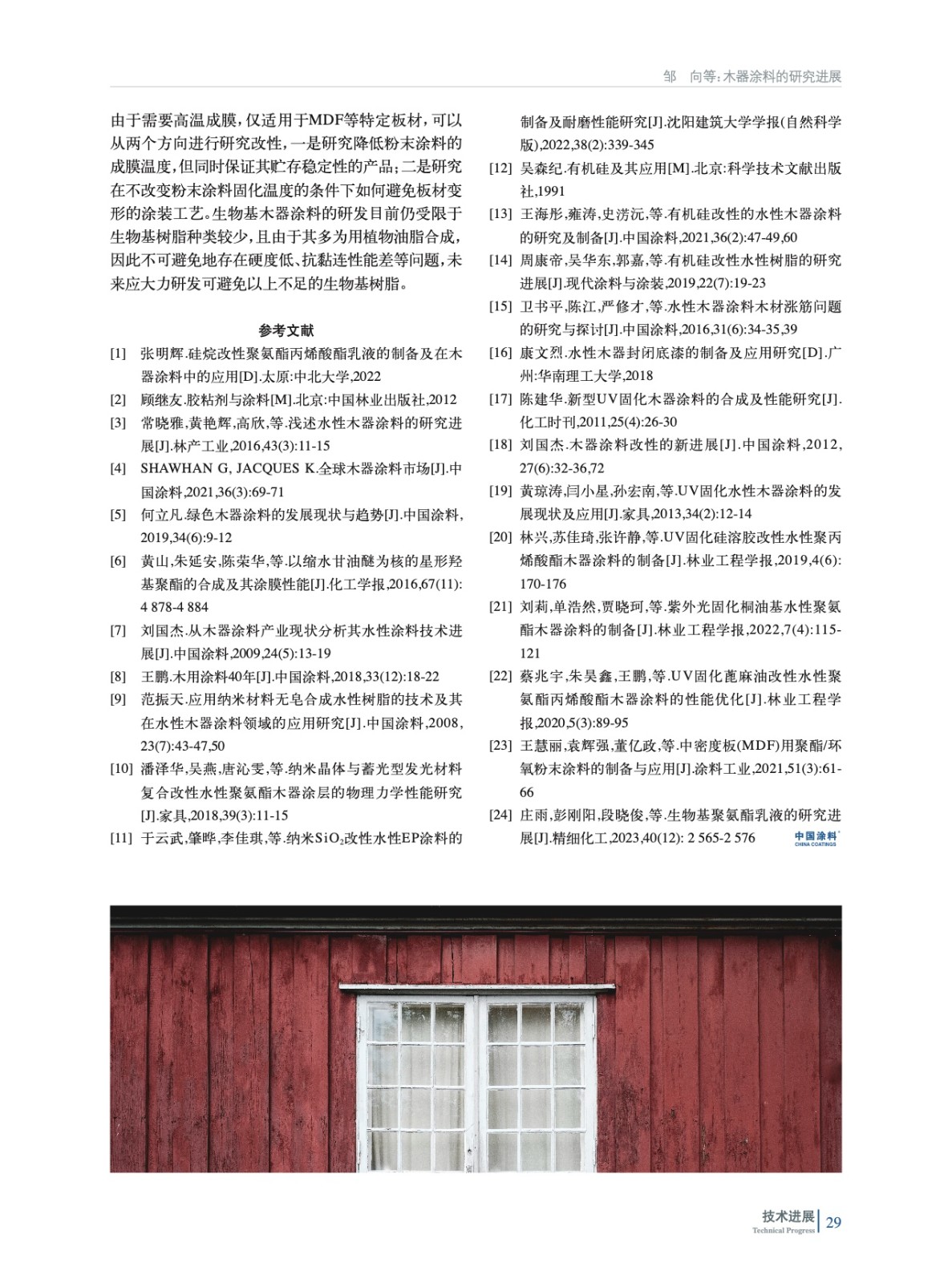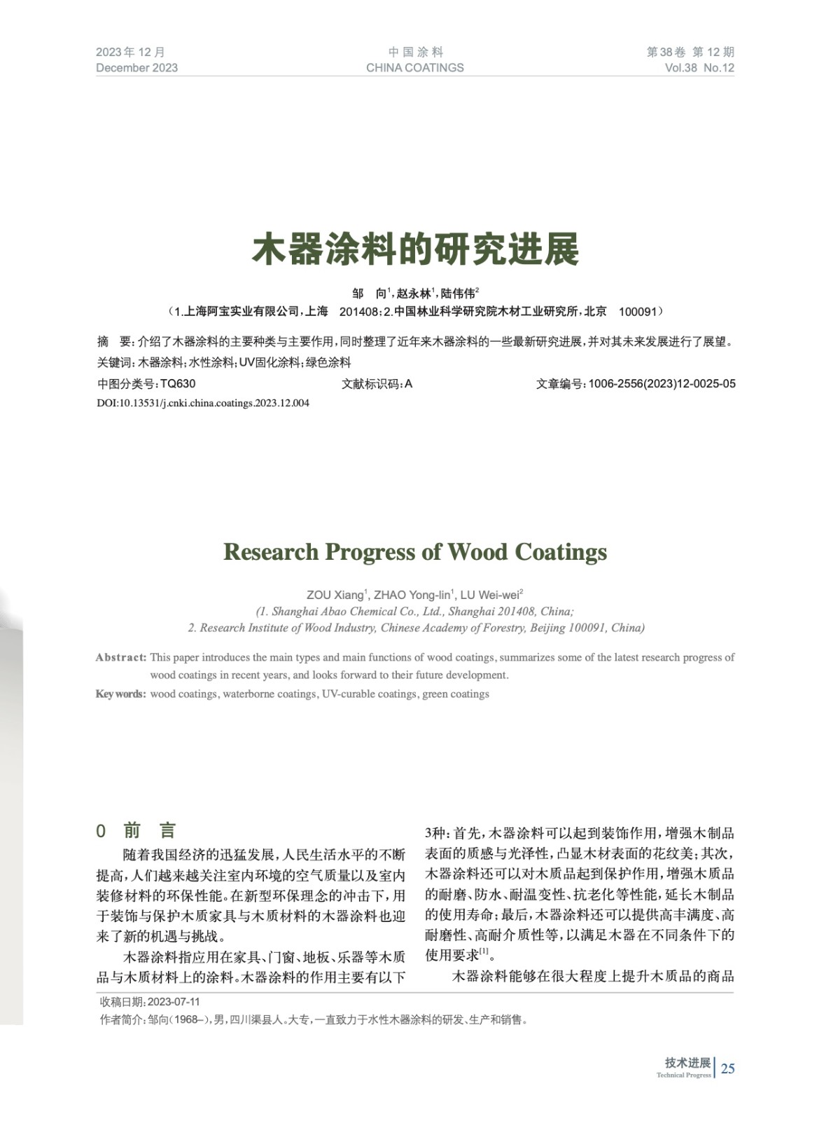 介紹了木器涂料的主要種類與主要作用,同時整理了近年來木器涂料的一些最新研究進展,并對其未來發展進行了展望。