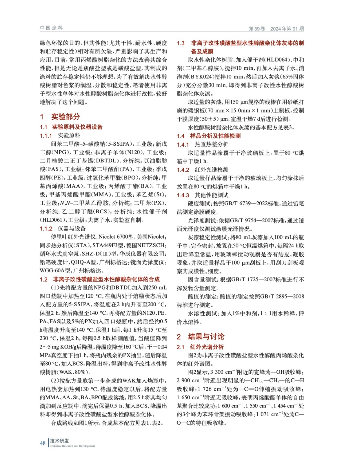 非離子改性水性醇酸樹脂–丙烯酸樹脂雜化體的制備及性能