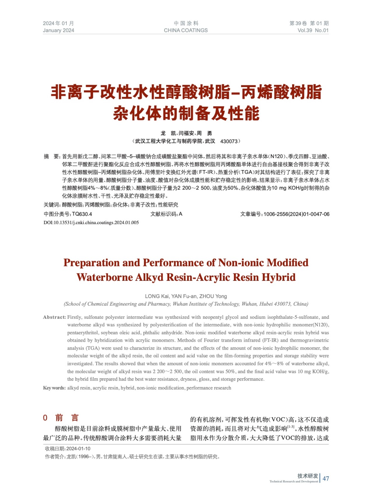 本文系作者@龍 凱,閆福安,周 勇 授權中國涂料網發表,并經中國涂料網編輯,未經允許不得轉載,如需轉載請聯系chinacoatingnet@vip.163.com