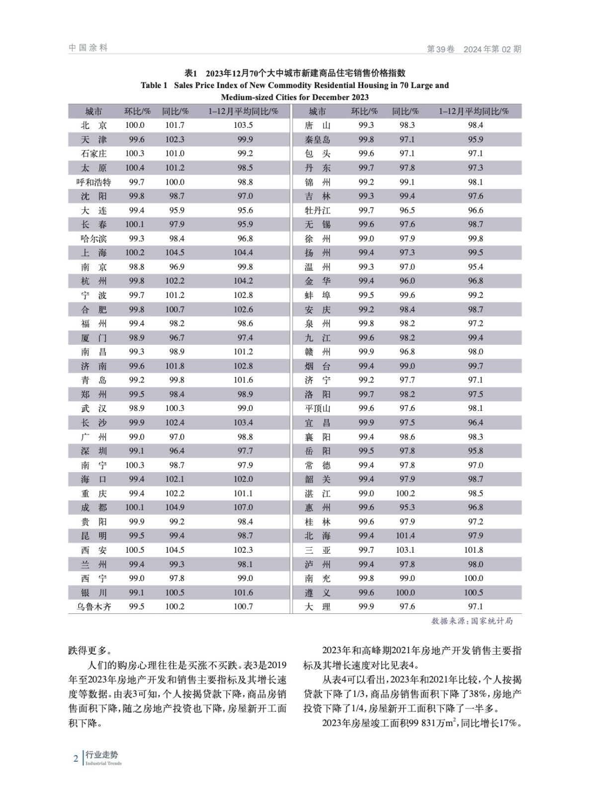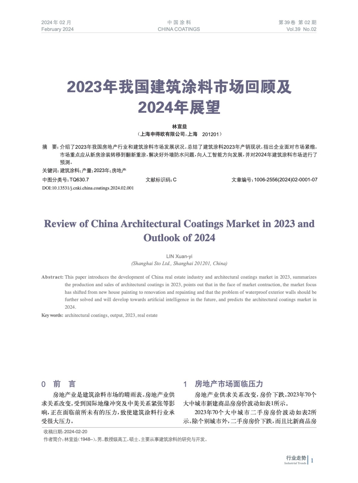 介紹了2023年我國房地產行業和建筑涂料市場發展狀況,總結了建筑涂料2023年產銷現狀,指出企業面對市場緊縮,市場重點應從新房涂裝轉移到翻新重涂,解決好外墻防水問題,向人工智能方向發展,并對2024年建筑涂料市場進行了預測。