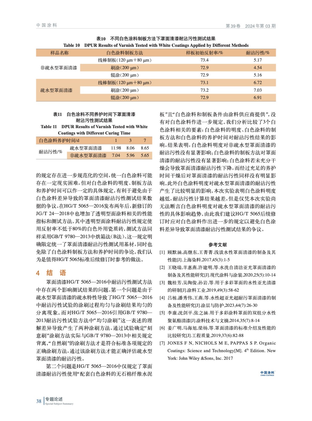 當前罩面清漆耐沾污性測試方法涉及HG/T 5065—2016和GB/T 9780—2013兩個標準,其中存在兩個主要問題經常引發測試結果爭議。實驗對兩個標準存在的問題及印發的爭議進行了測試,并給出了解決方案。