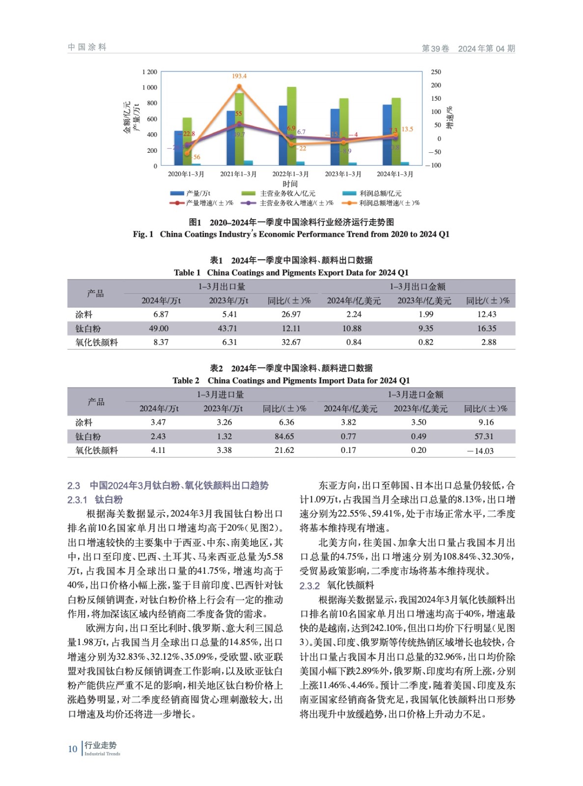 2024年一季度中國涂料、顏料行業經濟運行簡析