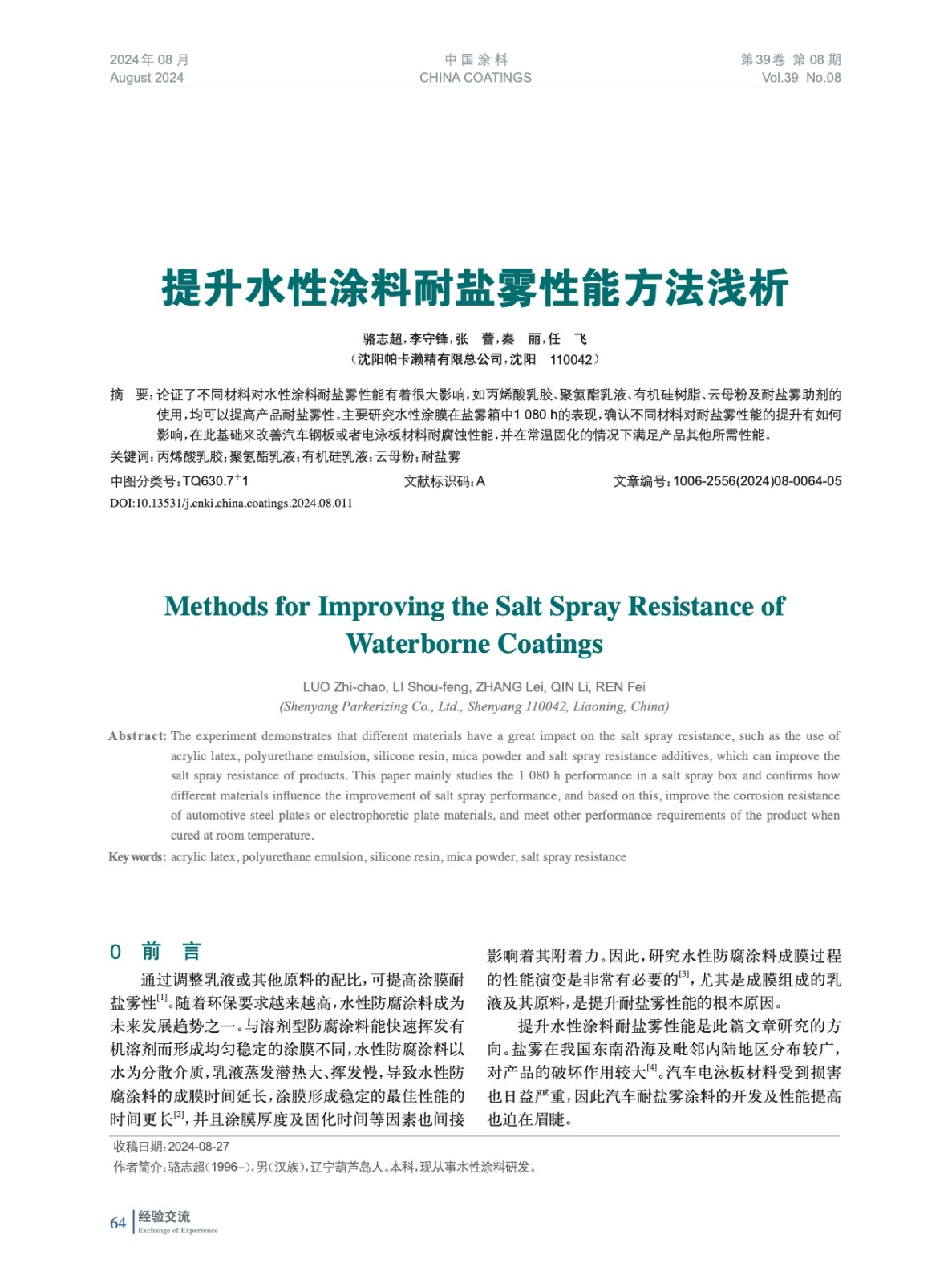 本文系作者@駱志超,李守鋒,張 蕾,秦 麗,任 飛 授權(quán)中國(guó)涂料網(wǎng)發(fā)表,并經(jīng)中國(guó)涂料網(wǎng)編輯,未經(jīng)允許不得轉(zhuǎn)載,如需轉(zhuǎn)載請(qǐng)聯(lián)系chinacoatingnet@vip.163.com