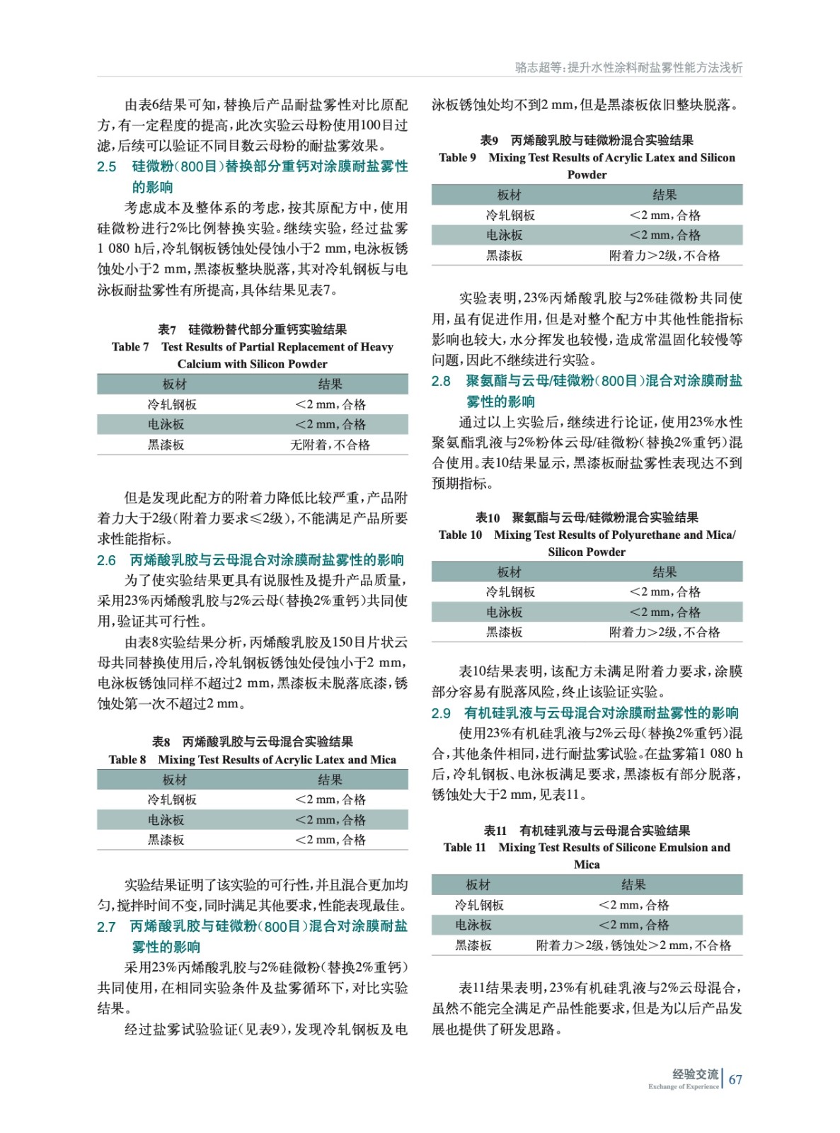 摘要:論證了不同材料對(duì)水性涂料耐鹽霧性能有著很大影響,如丙烯酸乳膠、聚氨酯乳液、有機(jī)硅樹(shù)脂、云母粉及耐鹽霧助劑的使用,均可以提高產(chǎn)品耐鹽霧性。主要研究水性涂膜在鹽霧箱中1 080 h的表現(xiàn),確認(rèn)不同材料對(duì)耐鹽霧性能的提升有如何影響,在此基礎(chǔ)來(lái)改善汽車(chē)鋼板或者電泳板材料耐腐蝕性能,并在常溫固化的情況下滿(mǎn)足產(chǎn)品其他所需性能。