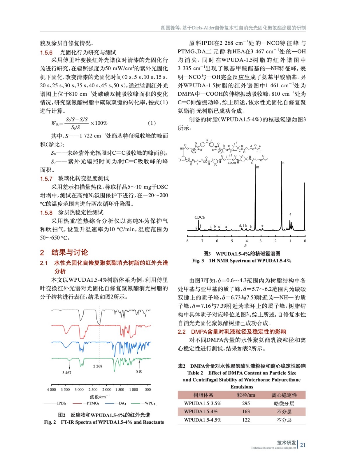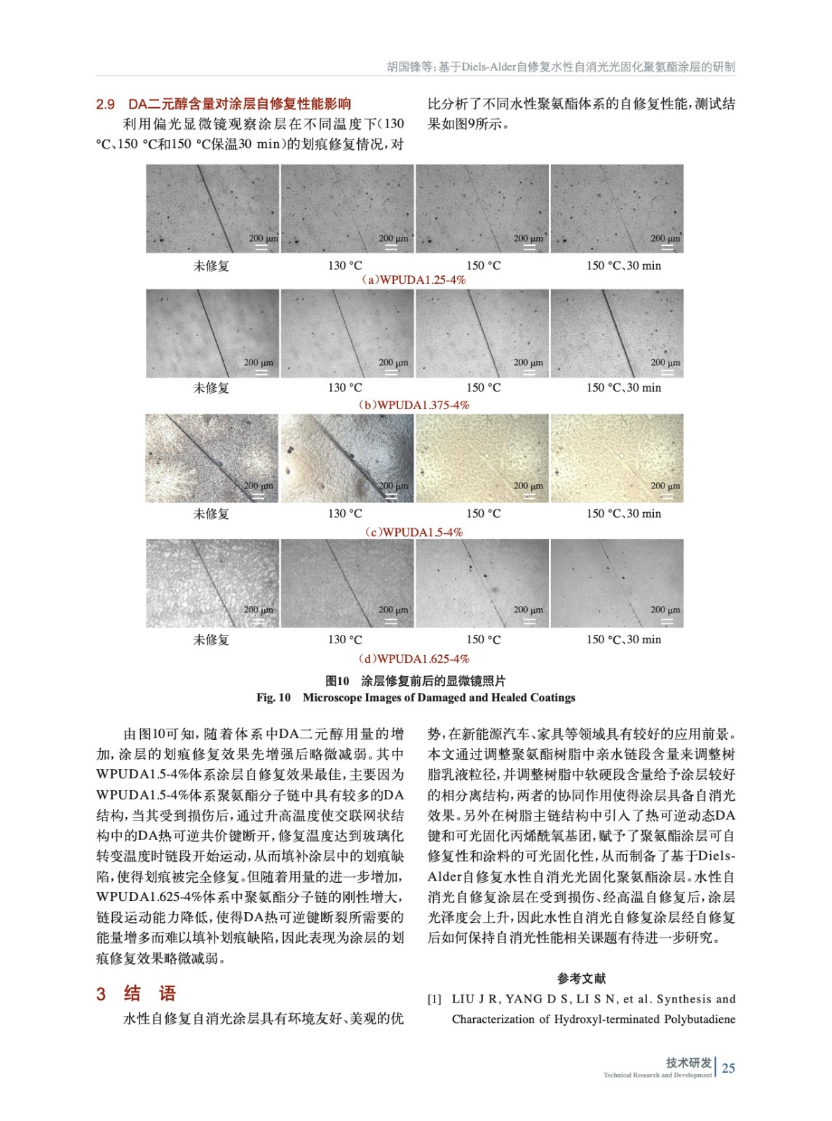 基于Diels-Alder自修復水性自消光光固化聚氨酯涂層的研制