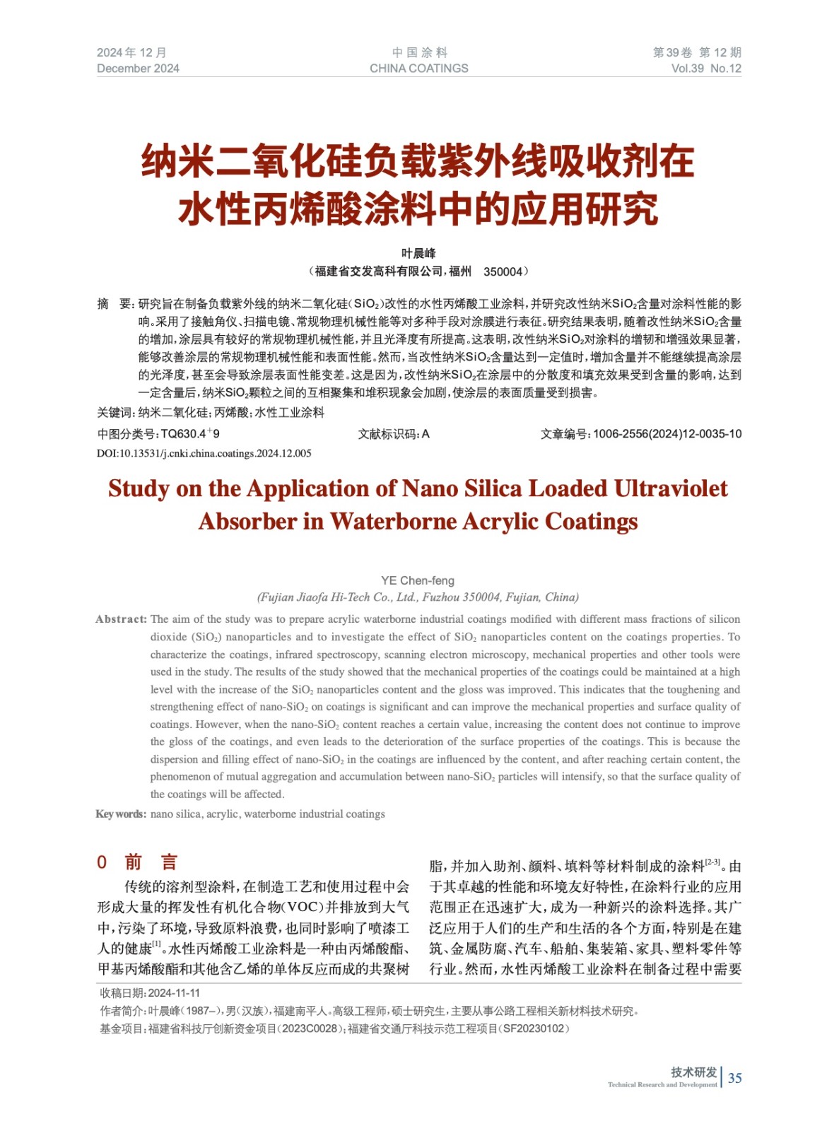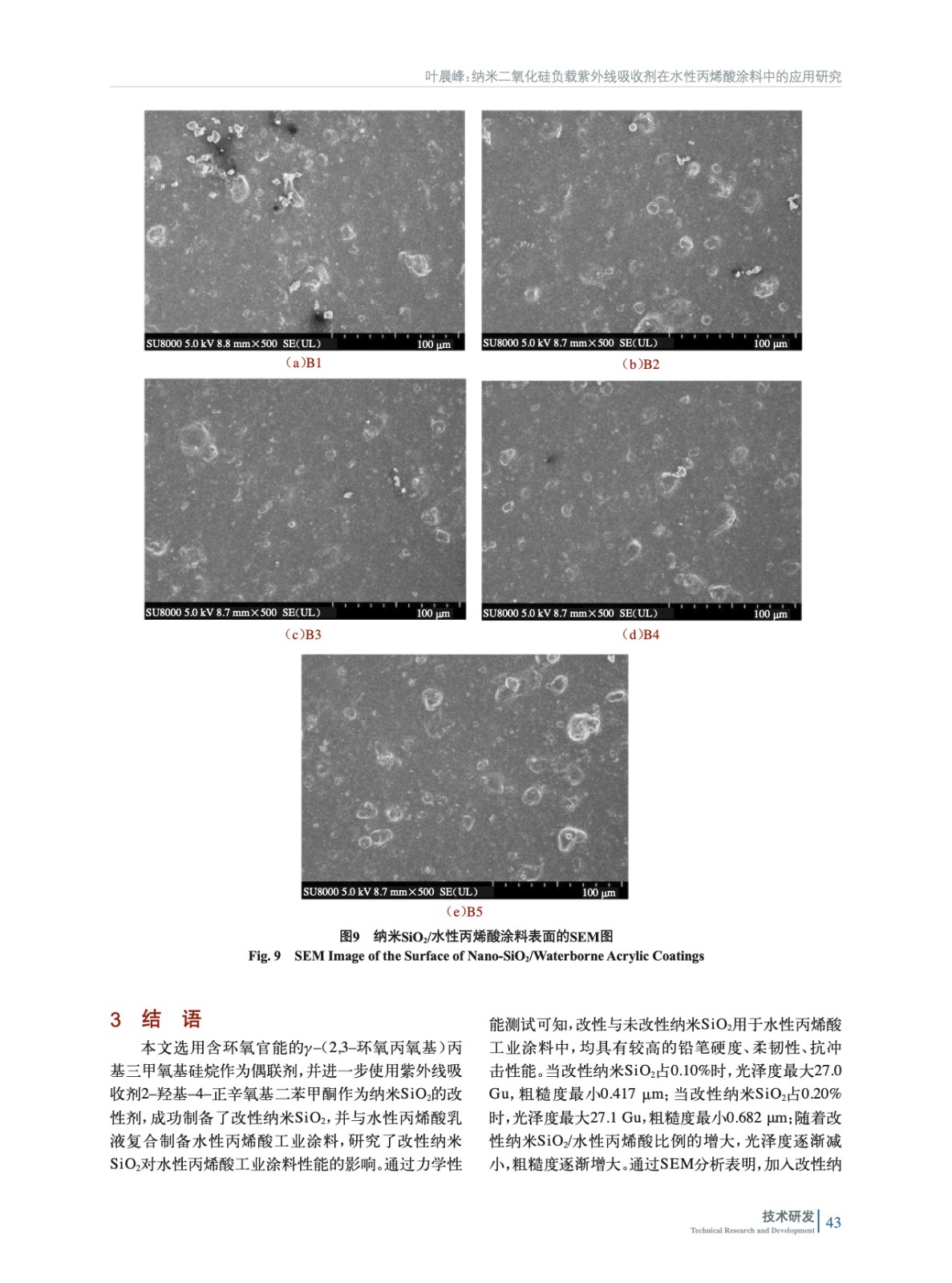 納米二氧化硅負載紫外線吸收劑在水性丙烯酸涂料中的應用研究