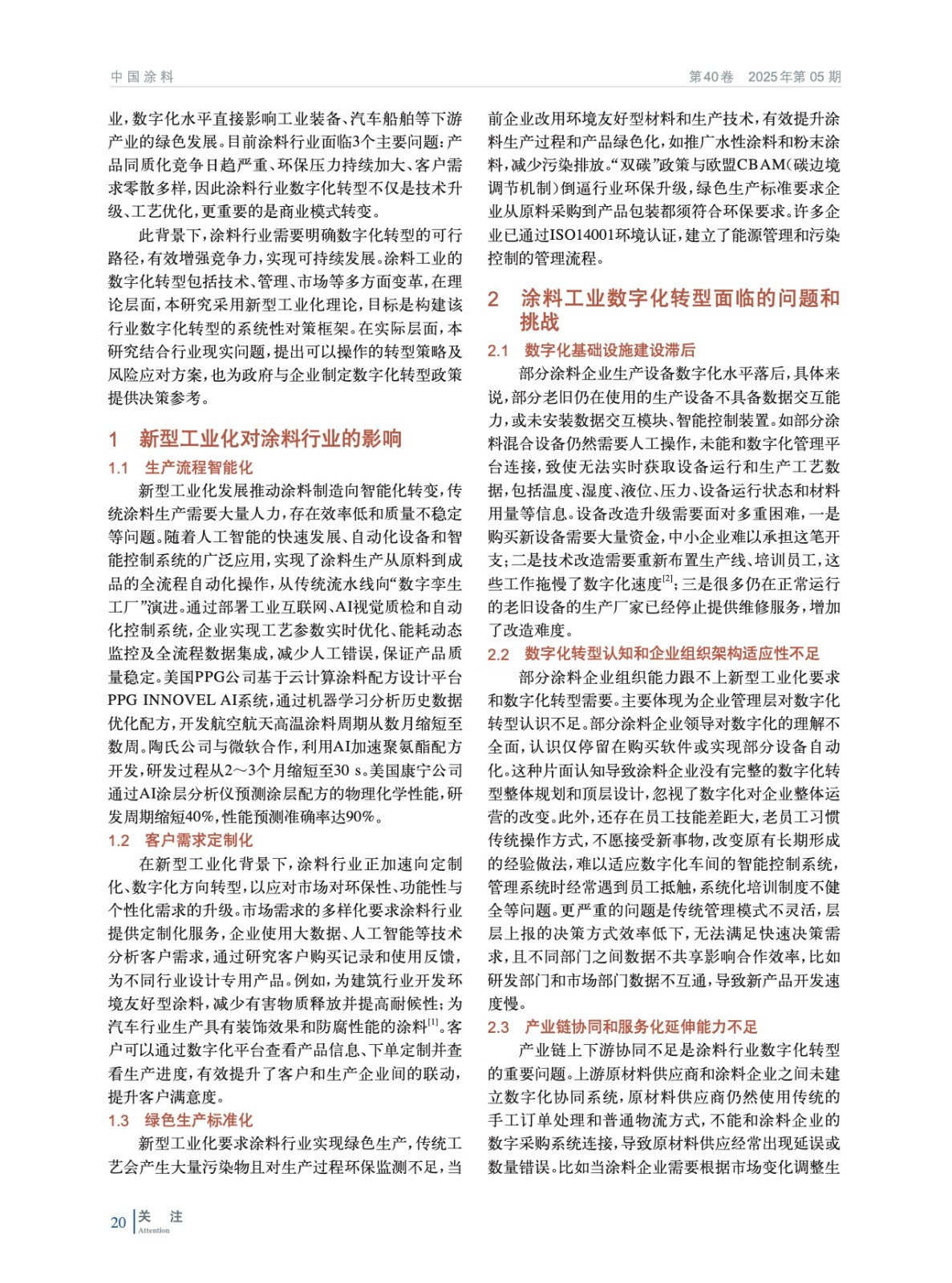 通過深入分析涂料工業在新型工業化背景下面臨的機遇與挑戰,探索其數字化轉型的有效路徑,旨在為涂料工業在新型工業化進程中實現高質量發展提供支持與實踐建議,助力行業突破發展瓶頸,提升整體競爭力。