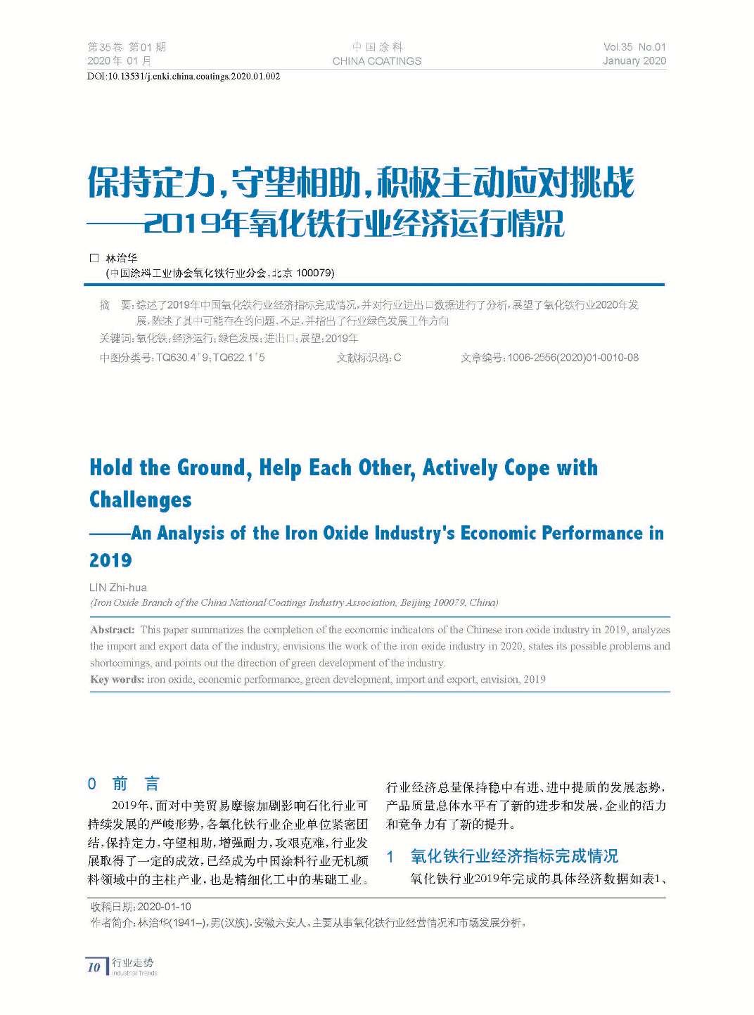 保持定力,守望相助,積極主動(dòng)應(yīng)對(duì)挑戰(zhàn)——2019年氧化鐵行業(yè)經(jīng)濟(jì)運(yùn)行情況
