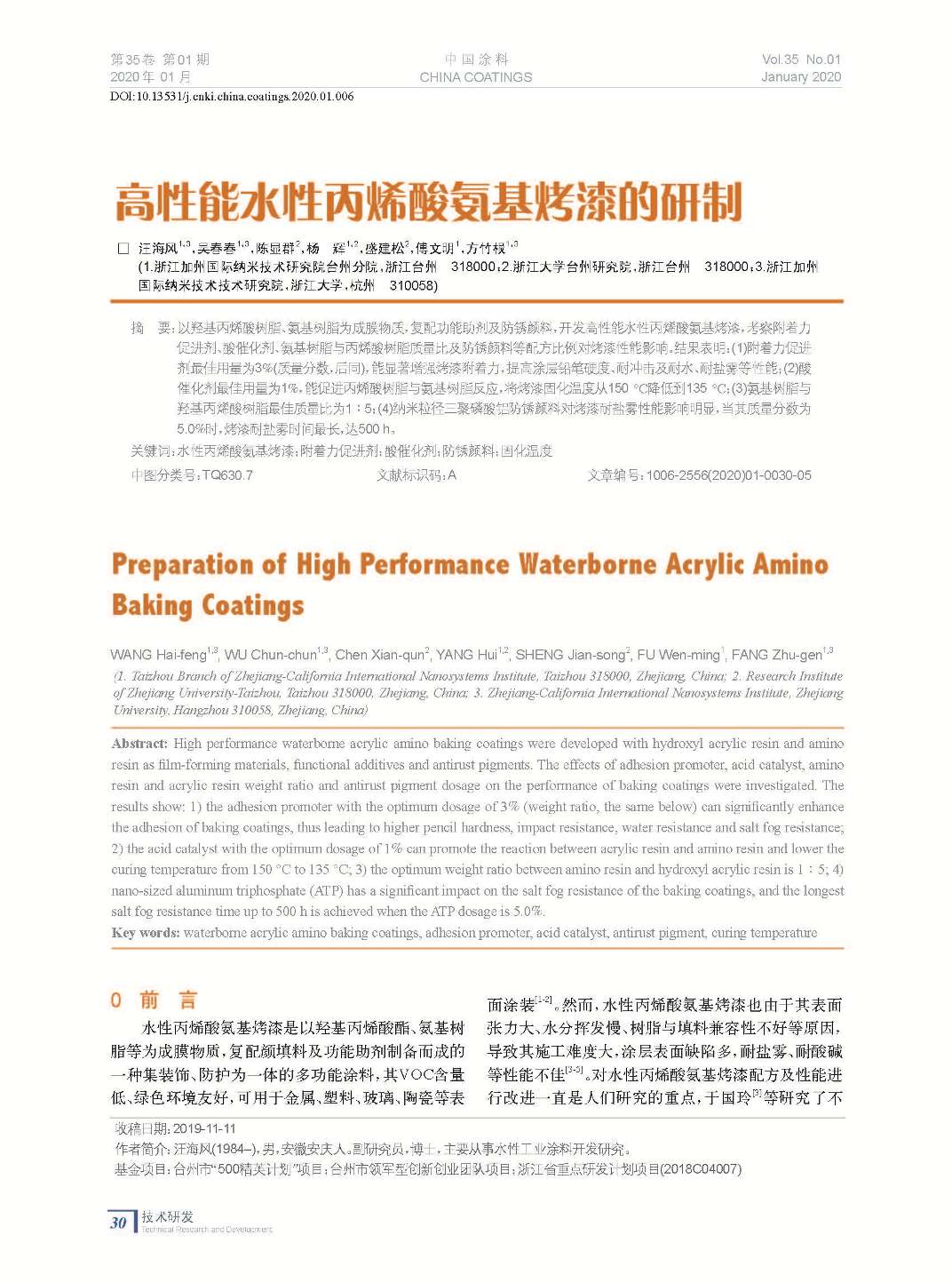 本文系作者@汪海風(fēng),吳春春,陳顯群,楊 輝,盛建松,傅文明,方竹根 授權(quán)中國(guó)涂料網(wǎng)發(fā)表,并經(jīng)中國(guó)涂料網(wǎng)編輯,未經(jīng)允許不得轉(zhuǎn)載,如需轉(zhuǎn)載請(qǐng)聯(lián)系chinacoatingnet@vip.163.com