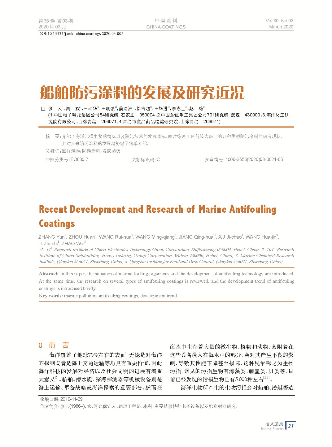 本文系作者@張 云,周 歡,王瑞華,王明強,姜清淮,徐吉超,王華進,李志士,趙 薇 授權中國涂料網發表,并經中國涂料網編輯,未經允許不得轉載,如需轉載請聯系chinacoatingnet@vip.163.com