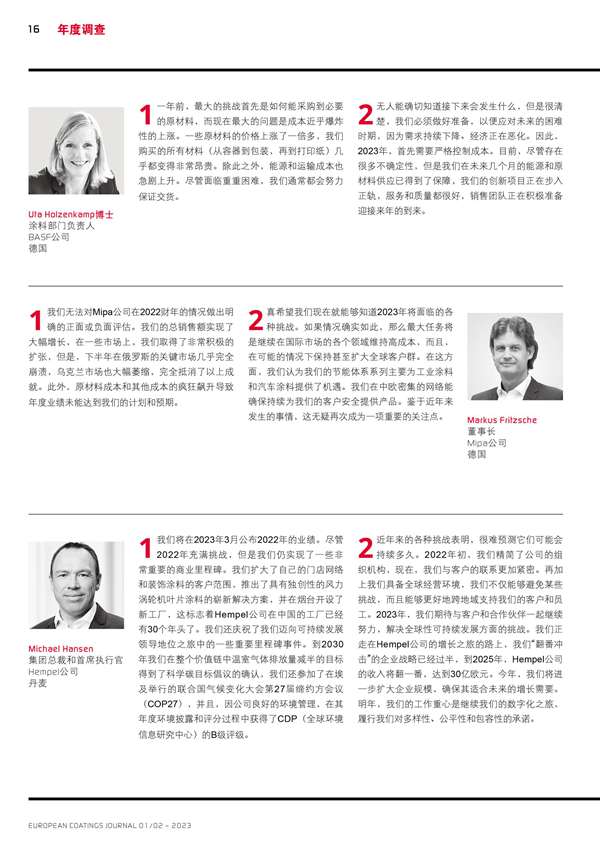 歐洲涂料生產商對2022年的回顧和2023年的預測